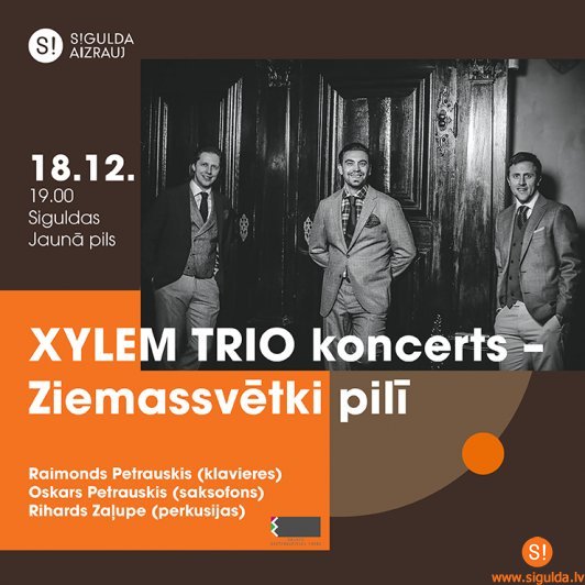 Pirms svētku laikā, 18. decembrī, plkst. 19.00 Siguldas Jaunajā pilī gaidāms koncerts “Ziemassvētki pilī”, kurā svētku noskaņu radīs apvienība “Xylem Trio” – Raimonds Petrauskis (klavieres), Oskars Petrauskis (saksofons) un Rihards Zaļupe (perkusijas).