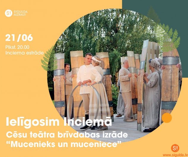 21. jūnijā plkst. 20.00 aicina ielīgot svētkus Inciema brīvdabas estrādē kopā ar Cēsu teātra režisores Edītes Siļķēnas iestudēto izrādi – Ādolfa Alunāna komisko opereti jeb dziesmuspēli vienā cēlienā “Mucenieks un Muceniece”. Izrādes mūzikas autors ir Raimonds Pauls.