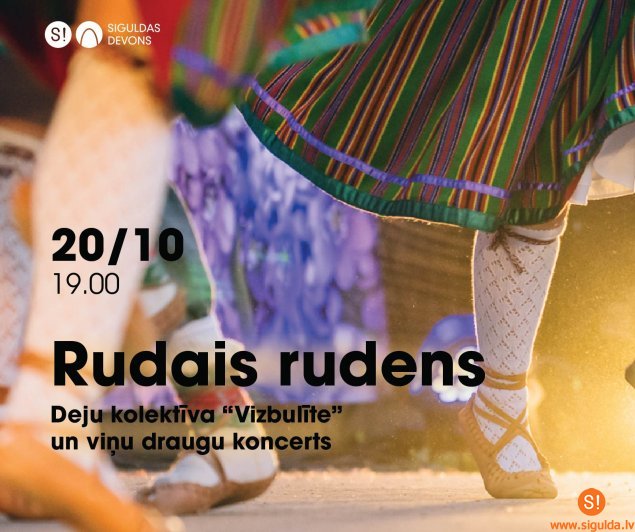 20. oktobrī plkst. 19.00 Siguldas Valsts ģimnāzijas un Siguldas pilsētas vidusskolas bērnu un jauniešu deju kolektīvs “Vizbulīte” aicina uz koncertu “Rudais rudens” kultūras centrā “Siguldas devons”.