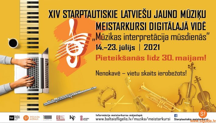 Līdz 30. maijam izsludināta pieteikšanās dalībai XIV Starptautiskajos latviešu jauno mūziķu meistarkursos “Mūzikas interpretācija mūsdienās”, kas no 14. līdz 23. jūlijam noritēs digitāli. Dalībai kursos aicināti pieteikties Latvijas un ārvalstu mūzikas mācību iestāžu vidējā un augstākā apguves posma audzēkņi un studenti, jaunie komponisti, atskaņotājmākslinieki un jaunie mūzikas skolotāji.