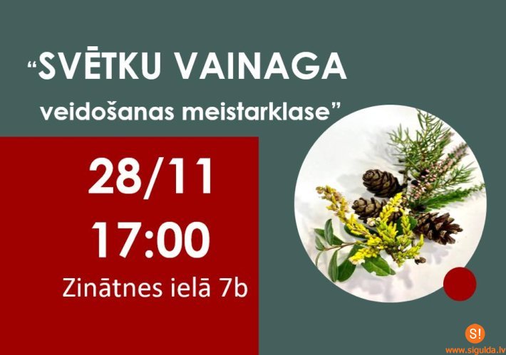 28. novembrī plkst. 17.00 Siguldas pagasta bibliotēkā, Zinātnes ielā 7B, notiks radošā nodarbība “Svētku vainaga veidošanas meistarklase”.