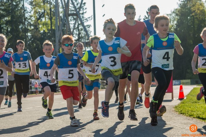 Pirmajā sacensību posmā dalībniekiem bija kopējais starts ar kontrollaiku. SV‑6 grupu dalībniekiem bija jāskrien 10 minūtes pa 200 metrus garo sporta laukuma apli, SV‑8 grupu dalībniekiem bija jāskrien 15 minūtes pa 200 metrus garo sporta laukuma apli, SV-10, SV-12, SV-14 grupām bija jāskrien 30 minūtes pa divu kilometru apli sporta laukumā, asfaltētajā trases daļā un mežā. SV-16 grupām un vecākiem dalībniekiem bija jāskrien 60 minūtes divu kilometru aplis pa sporta laukumu, asfaltēto trases daļu un meža takām. Nūjotājiem SV-Open grupā bija jānūjo 60 minūtes divu kilometru aplis. Skaitīti tika pilnie noskrietie un nonūjotie apļi.
