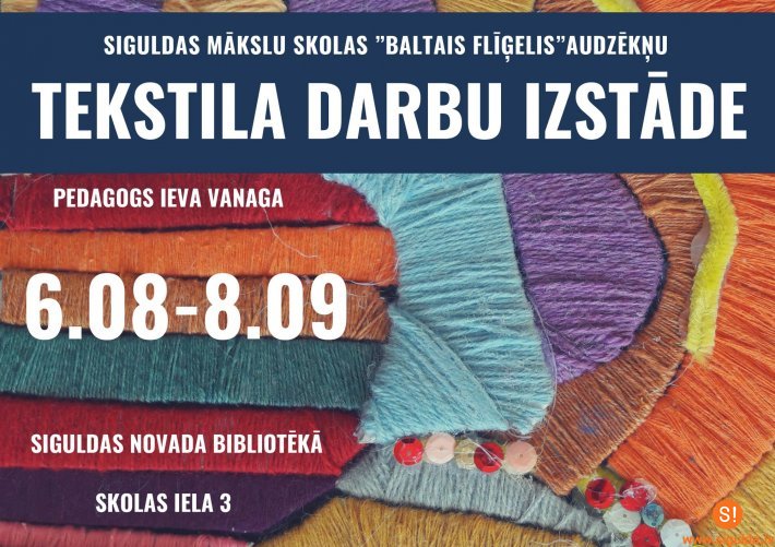 No 6.augusta līdz 8.septembrim Siguldas novada bibliotēkas izstāžu zālē skatāma Mākslu skolas „Baltais Flīģelis” 2. un 3.klases skolēnu tekstila darbu izstāde „Tekstils”.