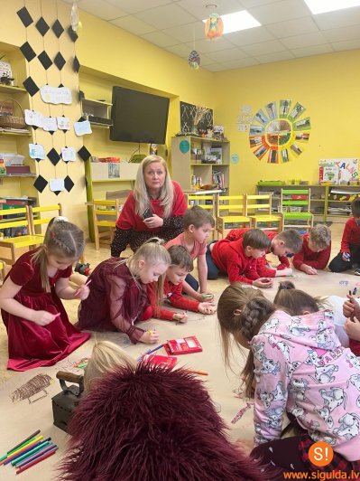 Pēc vēsturisko priekšmetu iepazīšanas un aptaustīšanas bērni uz liela papīra ruļļa zīmēja visu, kas ienāca prātā, dzirdot un domājot par vārdu “sens”. Bērnu veidotie zīmējumi būs daļa no kopīgi ieplānotas izstādes, kas uz īsu laiku tiks izveidota Inčukalna kopienas centrā “Vecais pasts”.