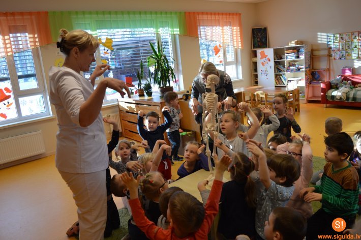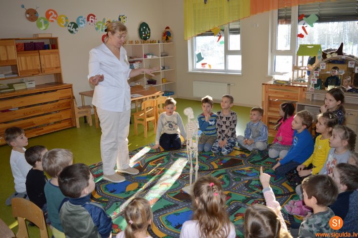 Bērni kopā ar audzinātājām un vecāku atbalstu gatavoja augļu kokteiļus, sviestmaizes, degustēja dažādus piena produktus un veselības tējas, nogaršoja pašu sētos garšaugus un izzināja to labās īpašības. Jaunākā vecuma grupu bērni apzinājās savu ķermeni un emocijas, bet vecāko grupu bērni izzināja cilvēka kaulu uzbūvi. Audzēkņi tika izglītoti arī par zobu un ķermeņa higiēnu. Veselības nedēļas noslēgumā audzēkņi kopā ar audzinātājām devās ārā, lai ar īpašām krāsām iekrāsotu sniegu pavasarīgās noskaņās.