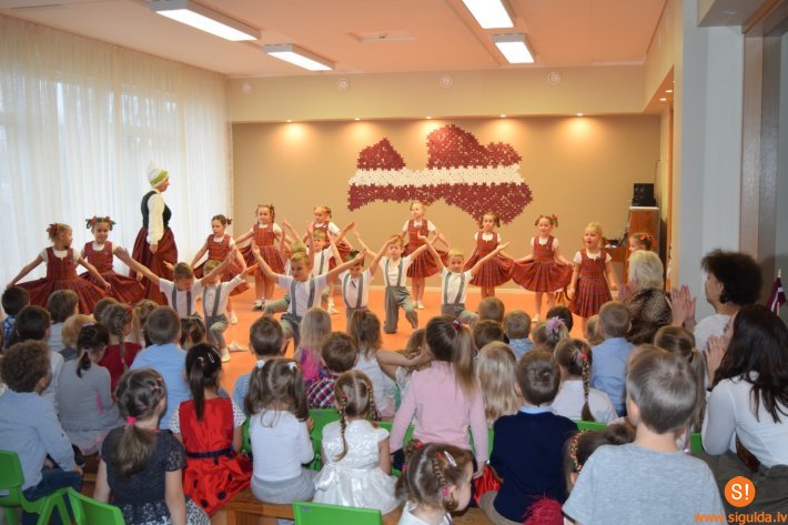 Pirmssvētku piektdienā visu grupu bērni kopā ar skolotājām skatījās animācijas filmu „Neparastie rīdzinieki”, kā arī video par to, kā izskatās brīvības pieminekļa iekšienē. Pēc tam bērni kopā ar skolotājām devās ārā, lai no svecītēm veidotu latviešu rakstu zīmju fragmentus. Pēcpusdienā svecītes tika iedegtas un priecēja gan bērnus, gan vecākus. Bērnudārza svētku noformējuma radīšanā piedalījās darbinieki, kā arī bērni un viņu ģimenes, veidojot auseklīšu karti ar saviem vārdiem. Savukārt 22.novembra rītā bērnudārzā norisinājās svinīgais Latvijas simtgades pasākums, kura mērķis bija veidot piederības izjūtu Latvijai un savam bērnudārzam.