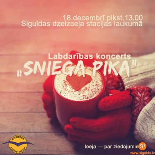 Svētdien, 18.decembrī, plkst.13.00 Siguldas dzelzceļa stacijas laukumā notiks Ziemassvētku labdarības koncerts „Sniega pika”, lai iepriecinātu biedrības „Cerību spārni” dalībniekus, Siguldas novada iedzīvotājus un viesus, un savāktu nepieciešamos līdzekļus biedrības sociālā atbalsta centra „Cerību māja” jaunajām māmiņām.