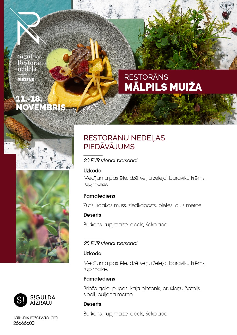 Gardēžus nedēļas garumā uzņems restorāni “Aparjods”, “Gadalaiki”, “Fazenda” un “Kungu rija”, viesnīcas “Sigulda” restorāns, “Bīriņu pils restorāns” un arī “Mālpils muižas restorāns”. Kā ierasts, Restorānu nedēļā būs iespēja baudīt gan trīs ēdienu maltītes par 20 vai 25 eiro, gan arī īpaši katrai ēdienkartei pieskaņotu dzērienu karti par 12 eiro.