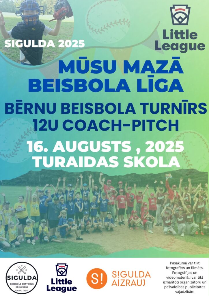 Svētdien, 16. augustā, Turaidas sporta laukumā notiks bērnu beisbola turnīrs “Mūsu mazā līga”, kurā piedalīsies Siguldas jaunie beisbolisti, kā arī viesu komandas no Latvijas un Lietuvas – Rīgas, Platones un Kauņas.