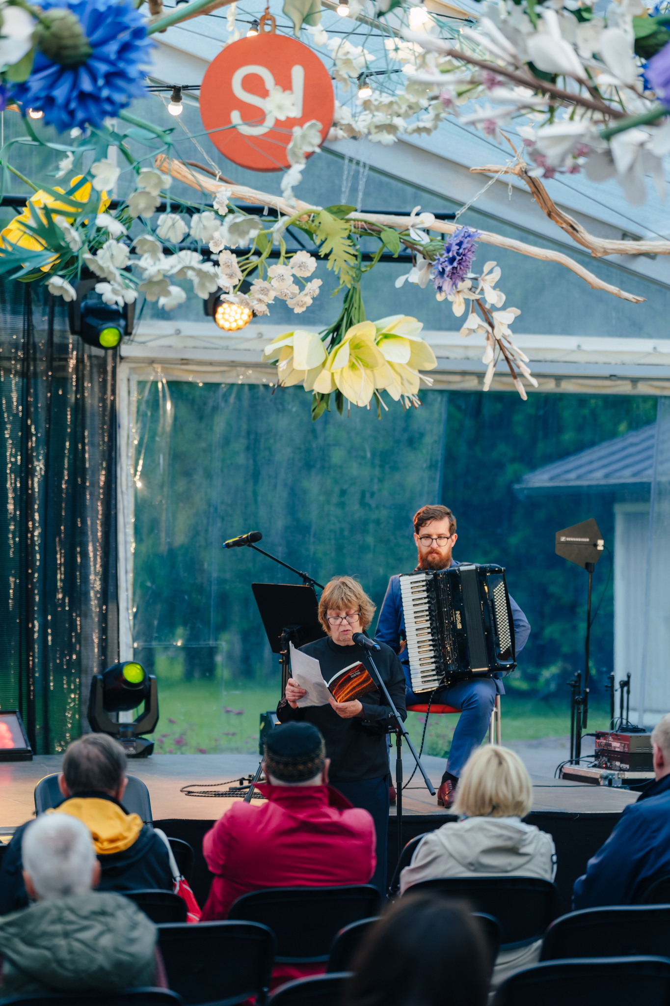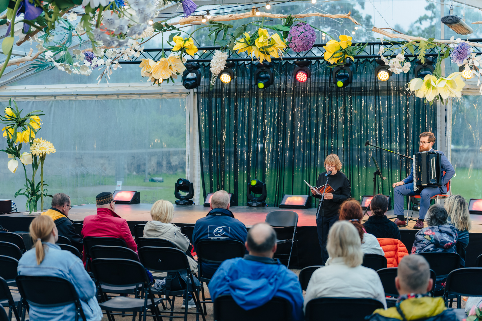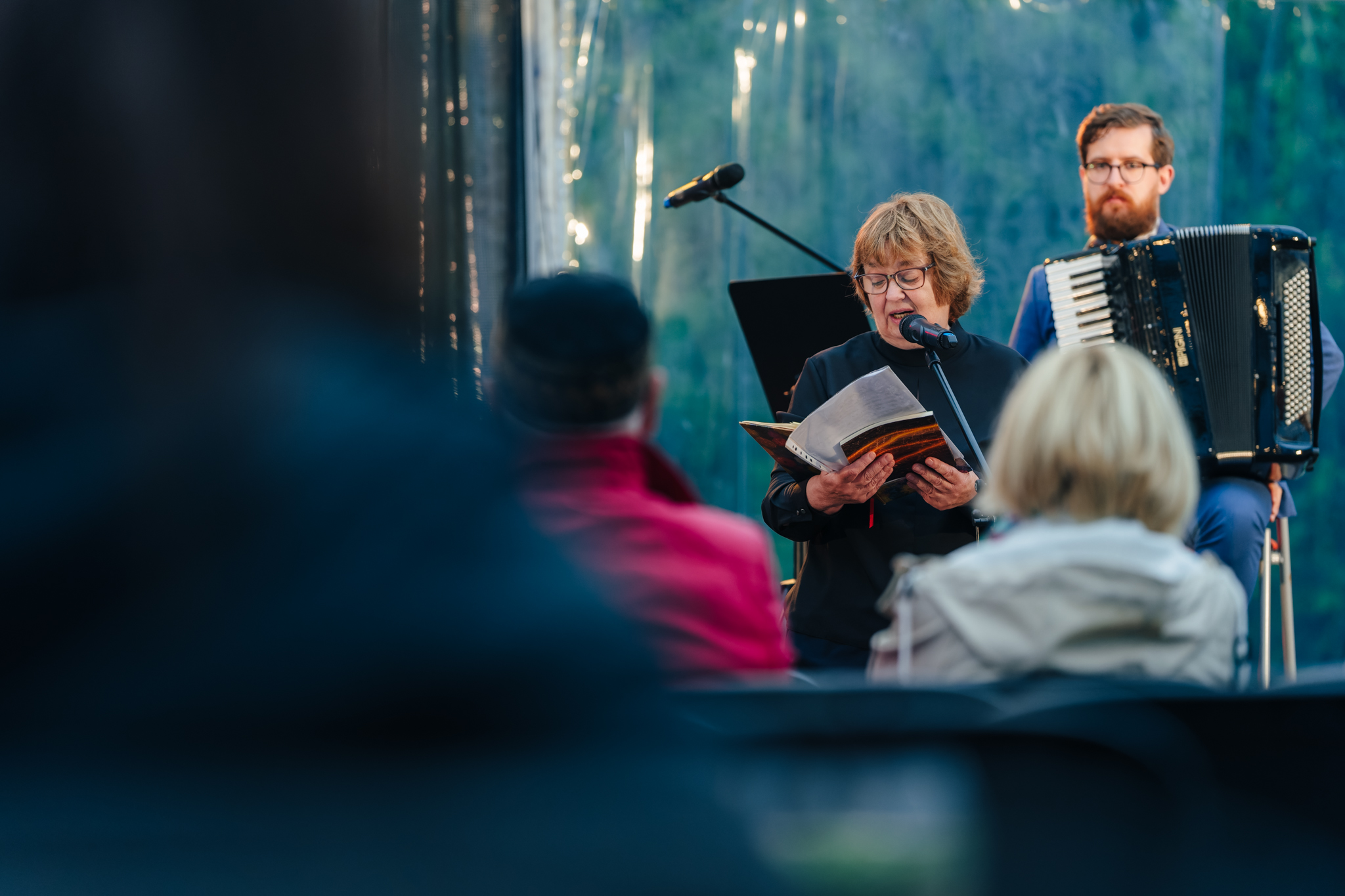 Cikla “Vasaras lasijumi” tikšanās ar dzejnieci Dainu Sirmo un mūziķi Māri Rozenfeldu Siguldas pils paviljonā