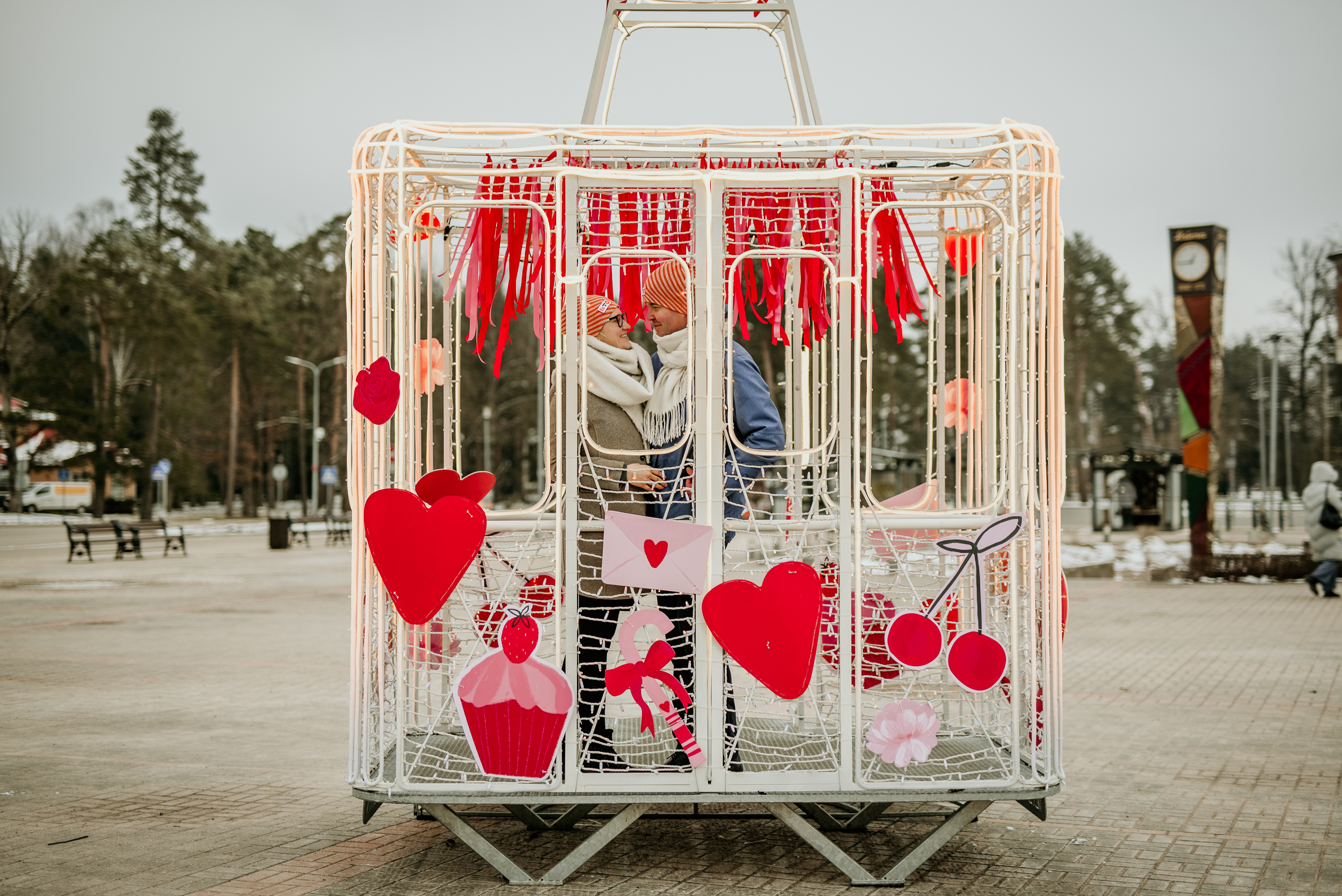 Gaismas objekts “Siguldas vagoniņš” Siguldas dzelzceļa stacijas laukumā izrotāts romantiskās noskaņās