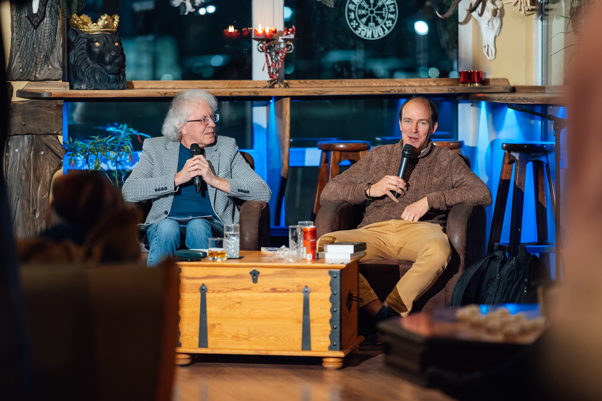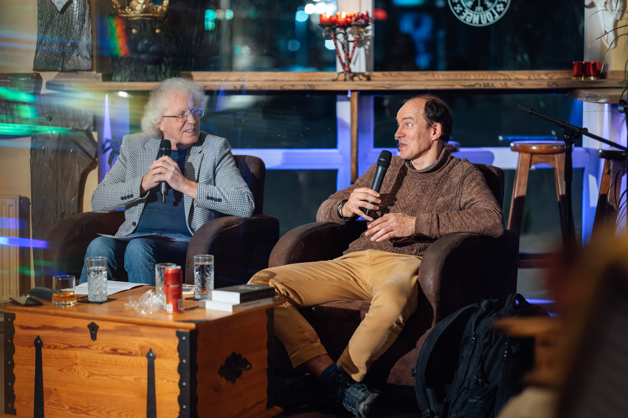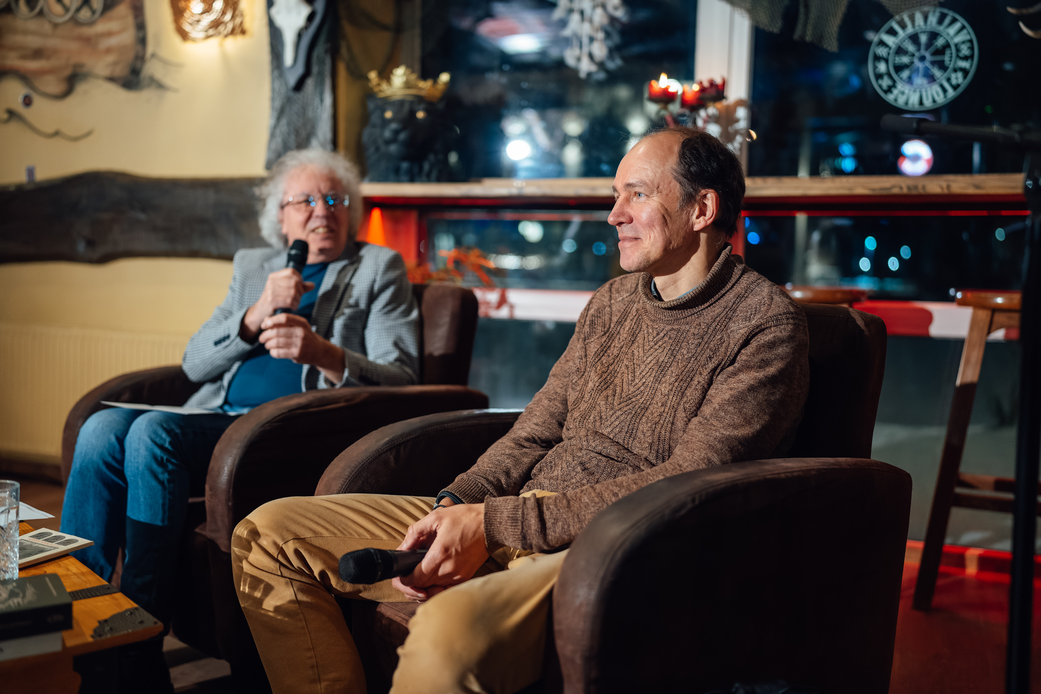 “[Ie]nāc literatūrā” Guntara Godiņa saruna ar tulkotāju Denu Dimiņu kafejnīcā “Valhalla Lounge”