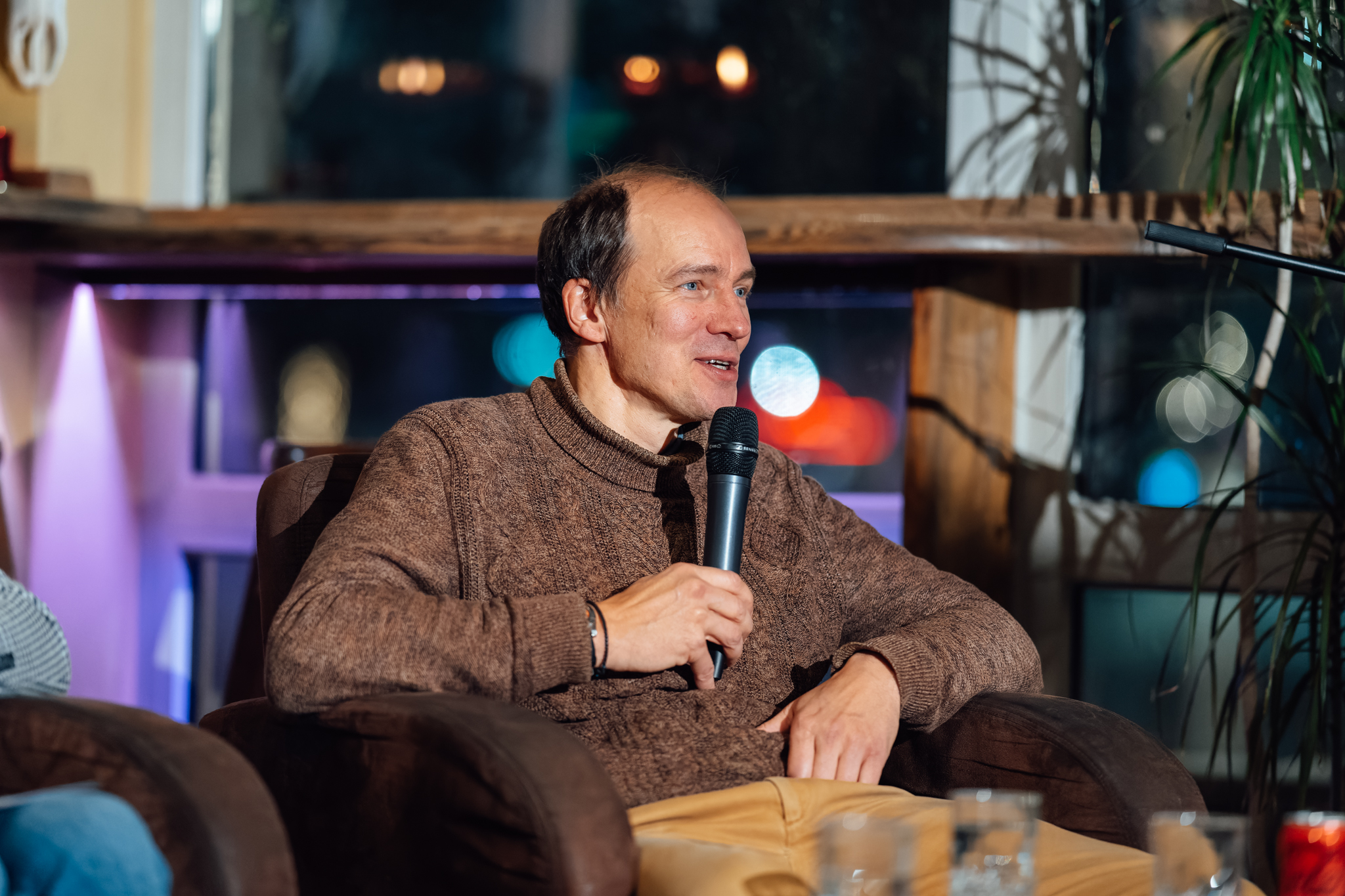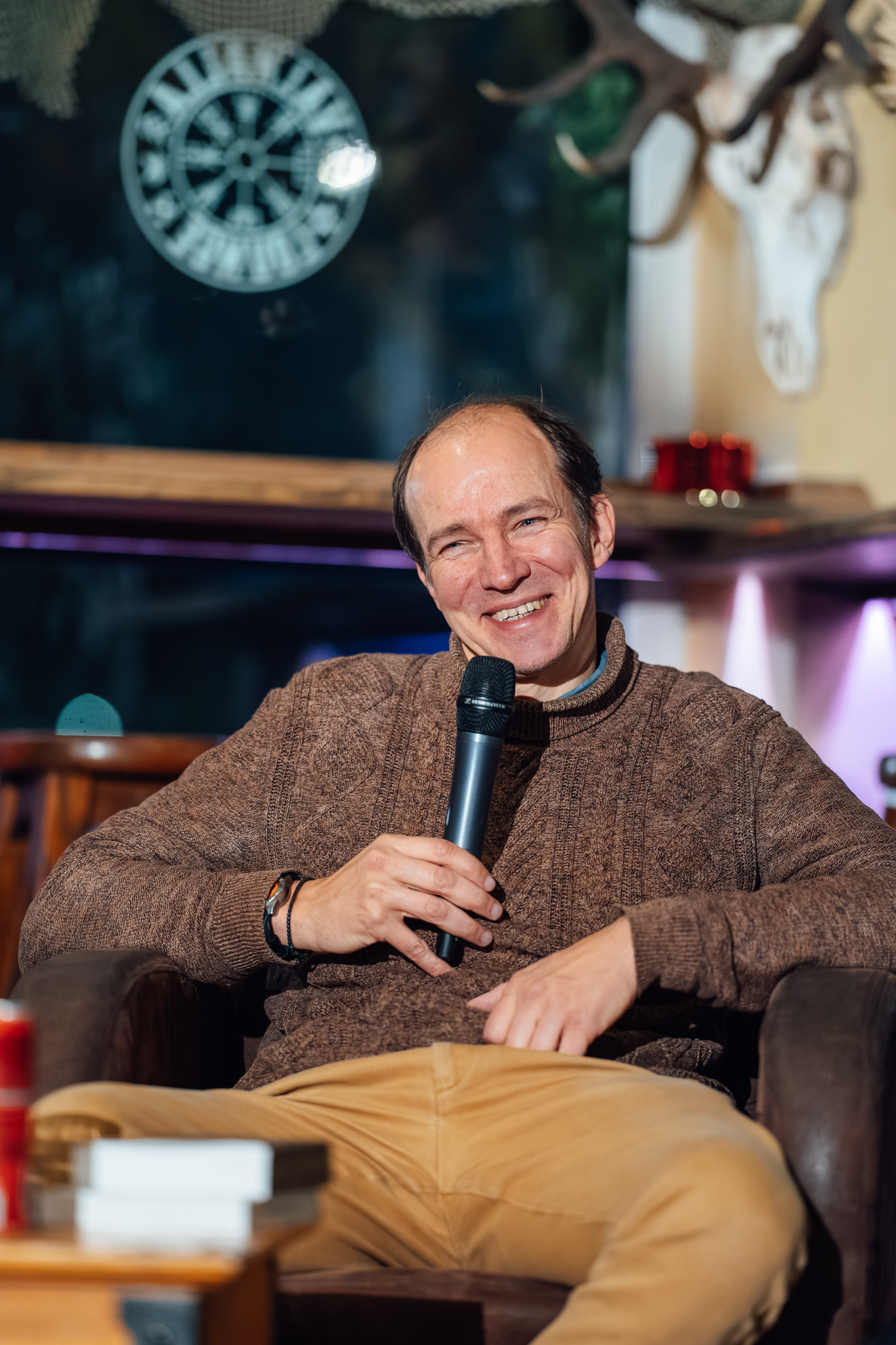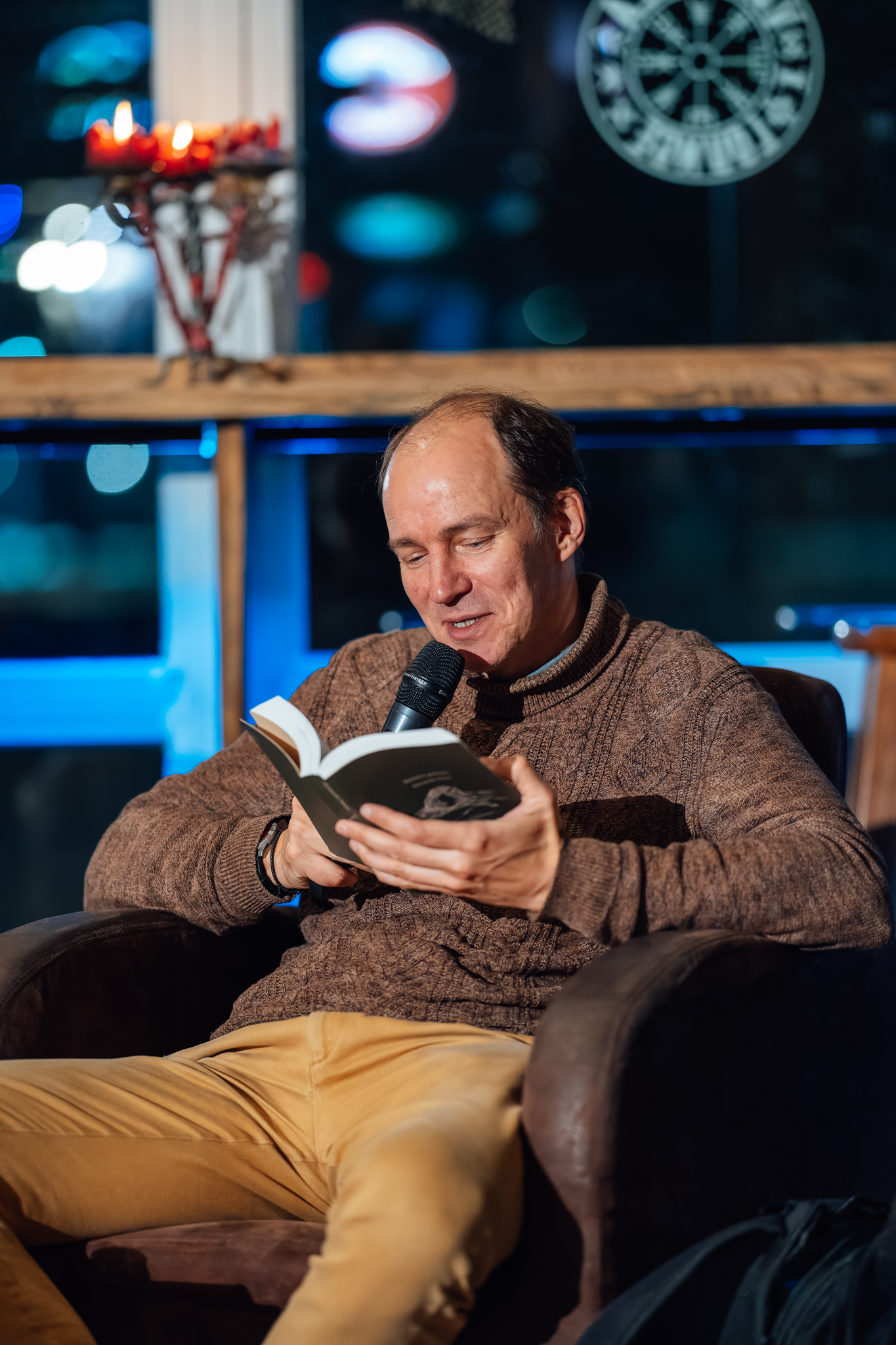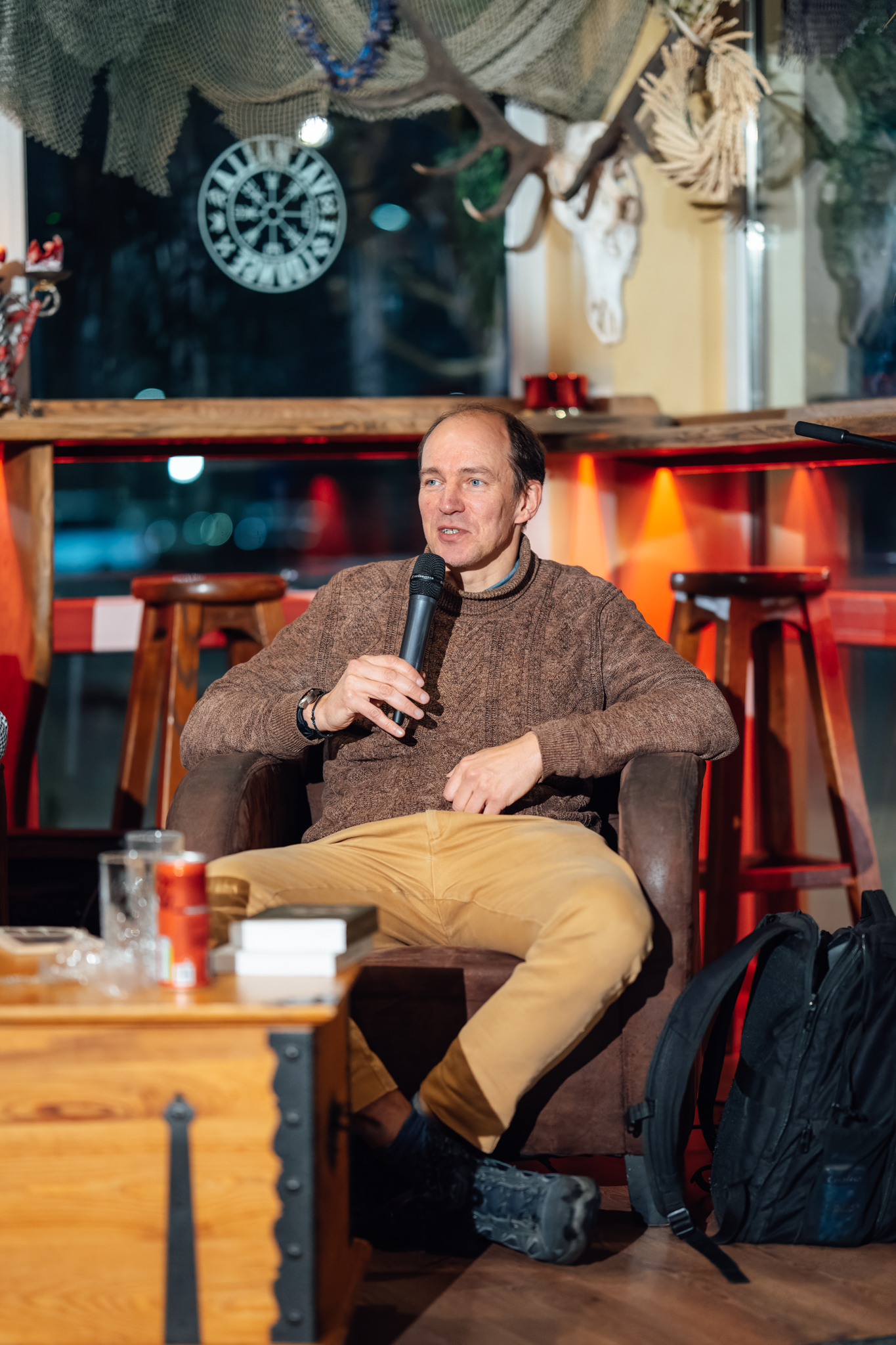 “[Ie]nāc literatūrā” Guntara Godiņa saruna ar tulkotāju Denu Dimiņu kafejnīcā “Valhalla Lounge”