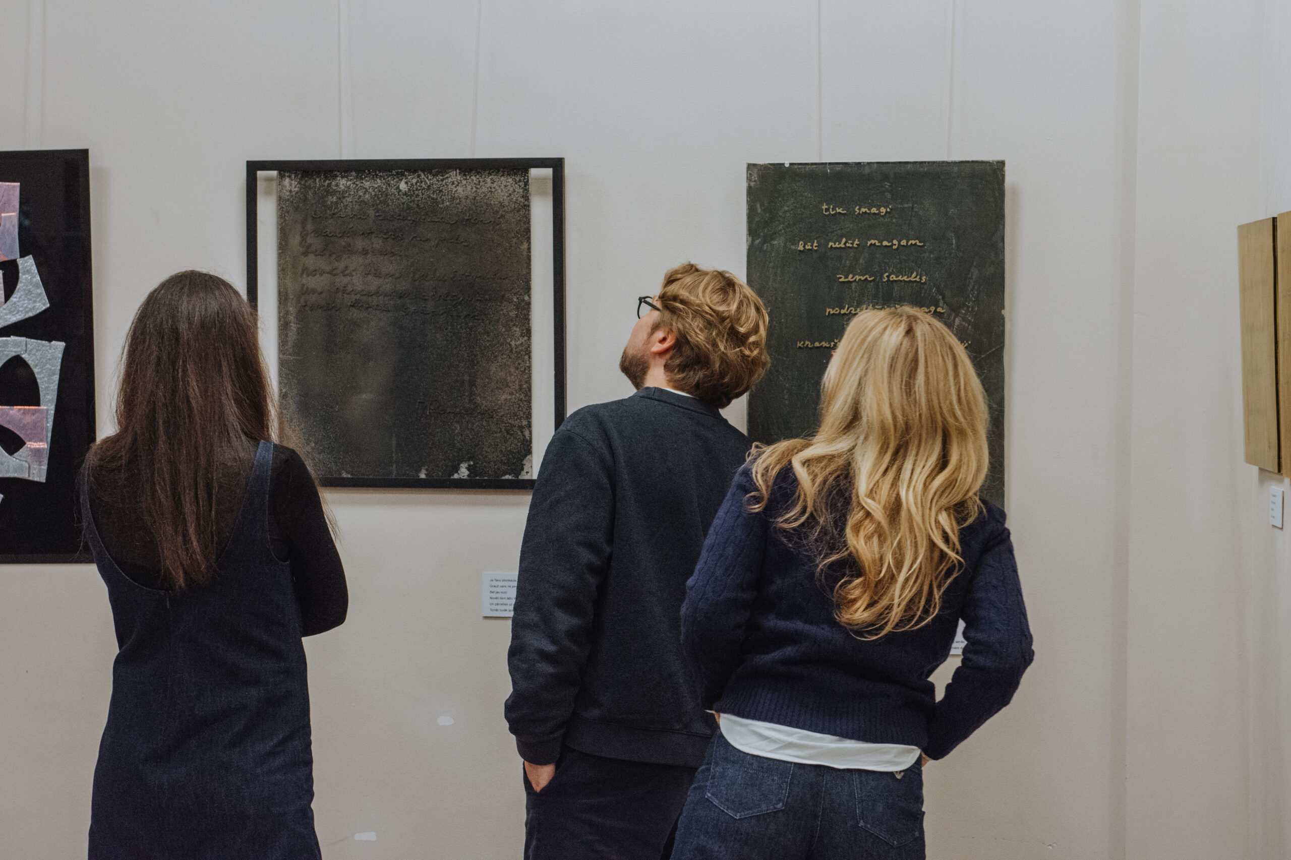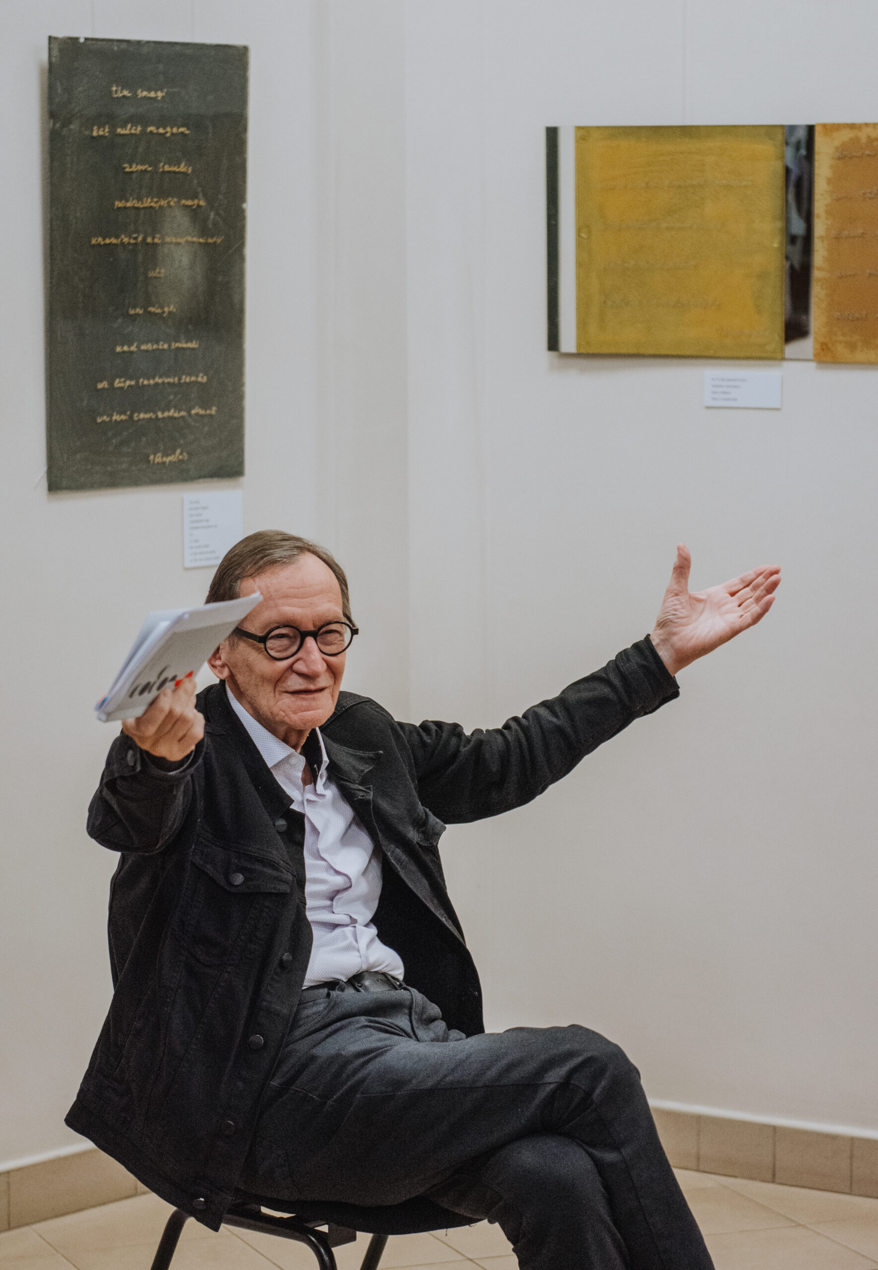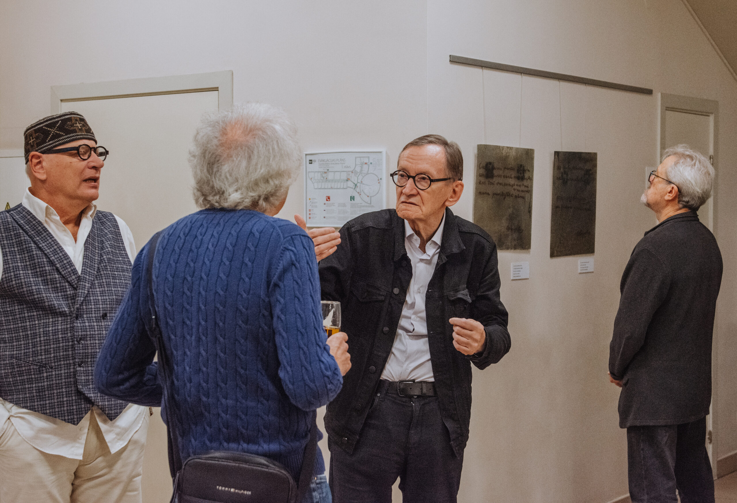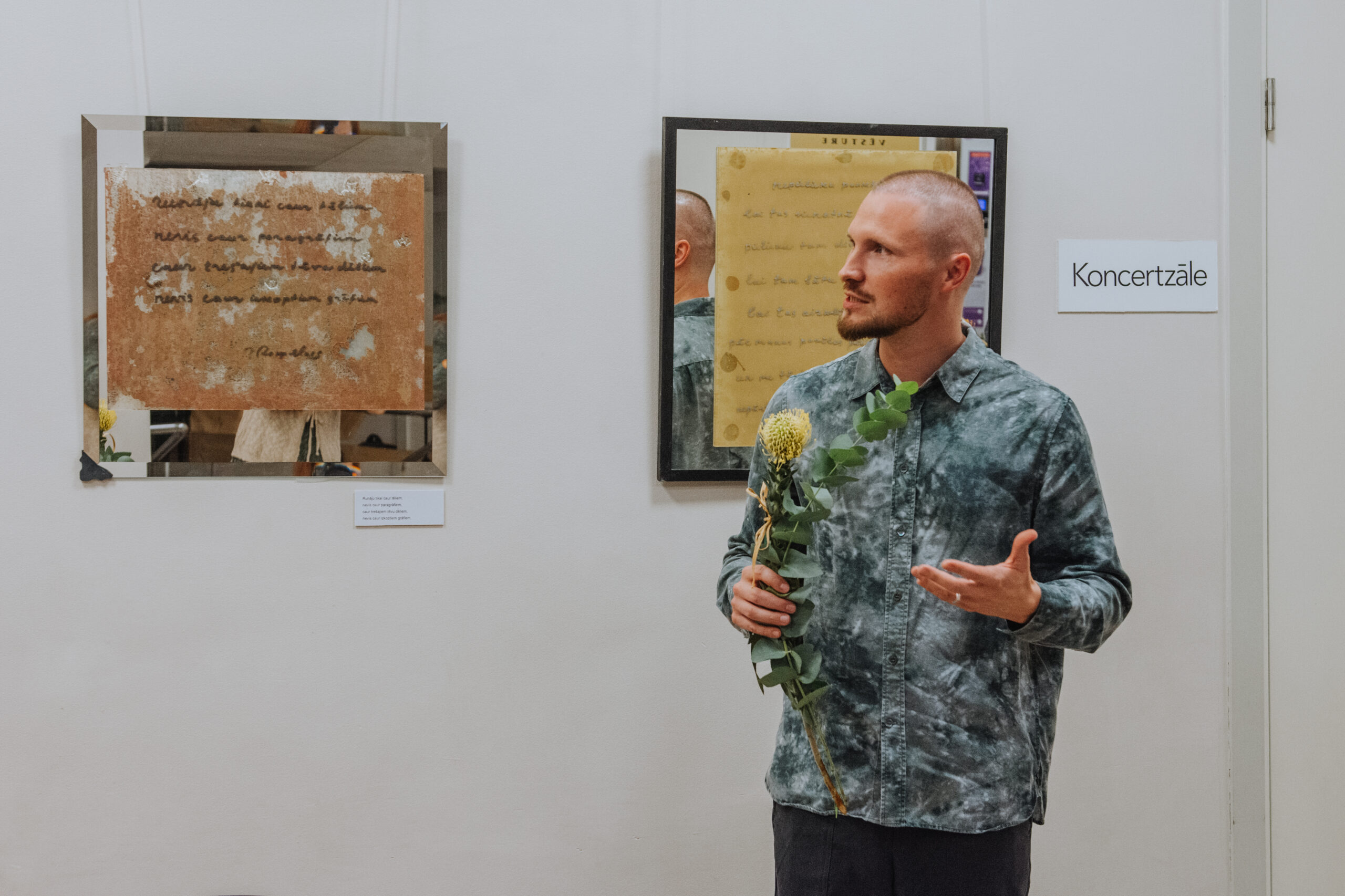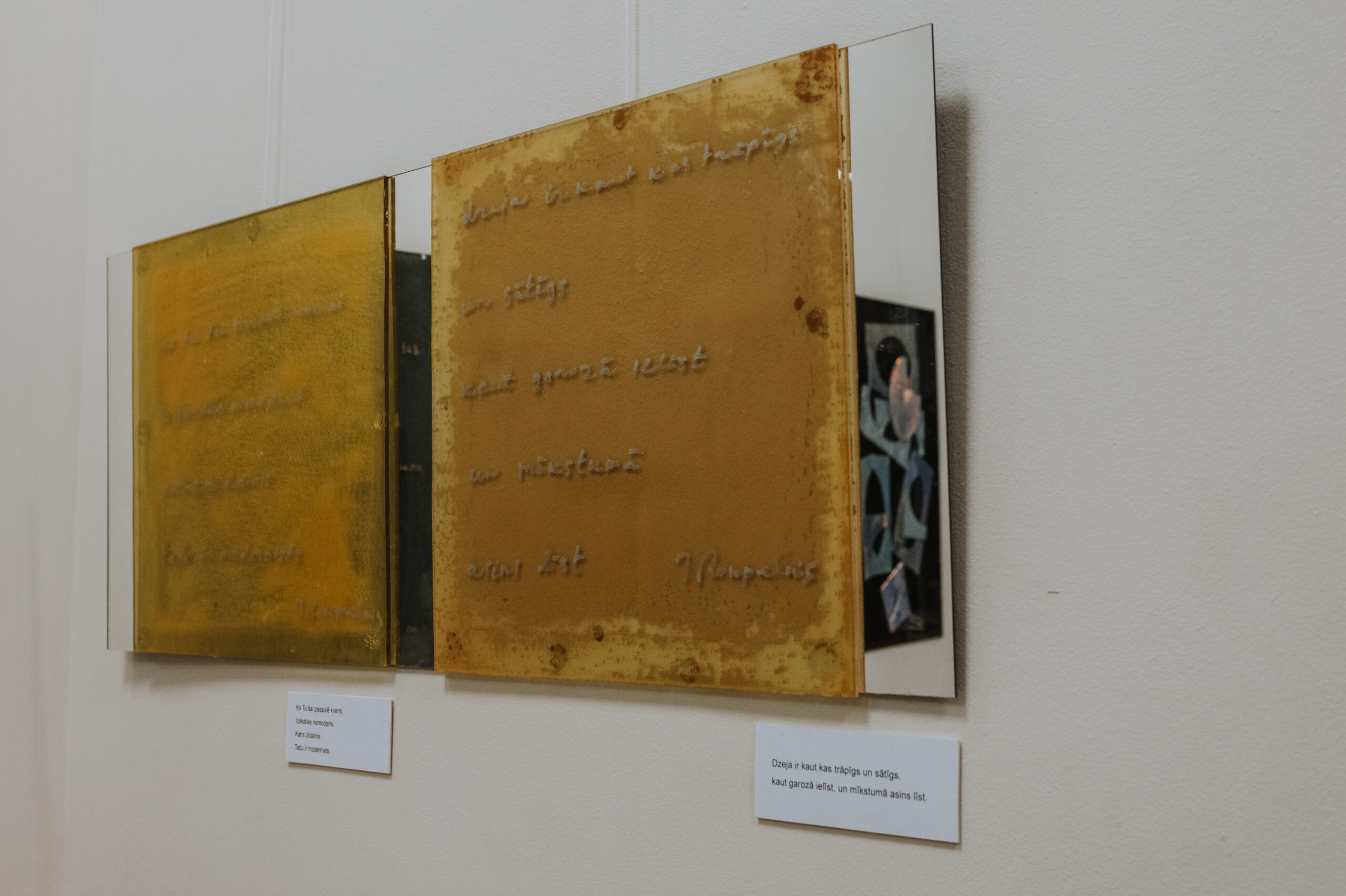 Mākslinieka Daiņa Gudovska un dzejnieka Jāņa Rokpeļņa izstādes “Teksti stiklā” atklāšana koncertzālē “Baltais flīģelis”