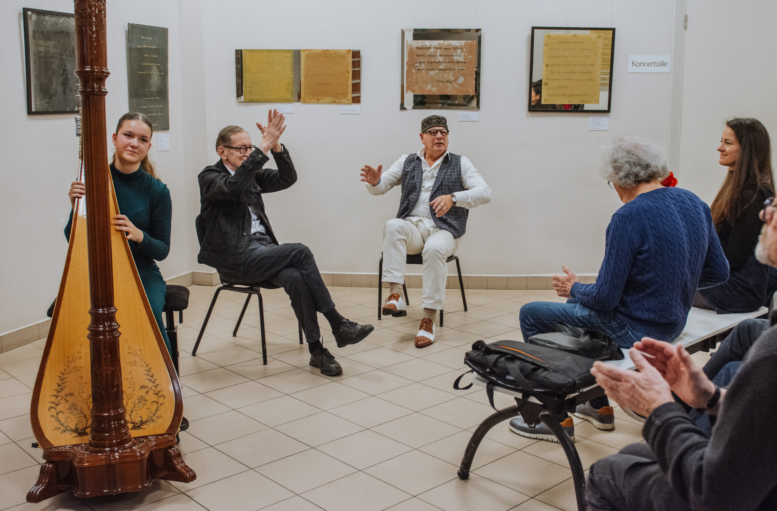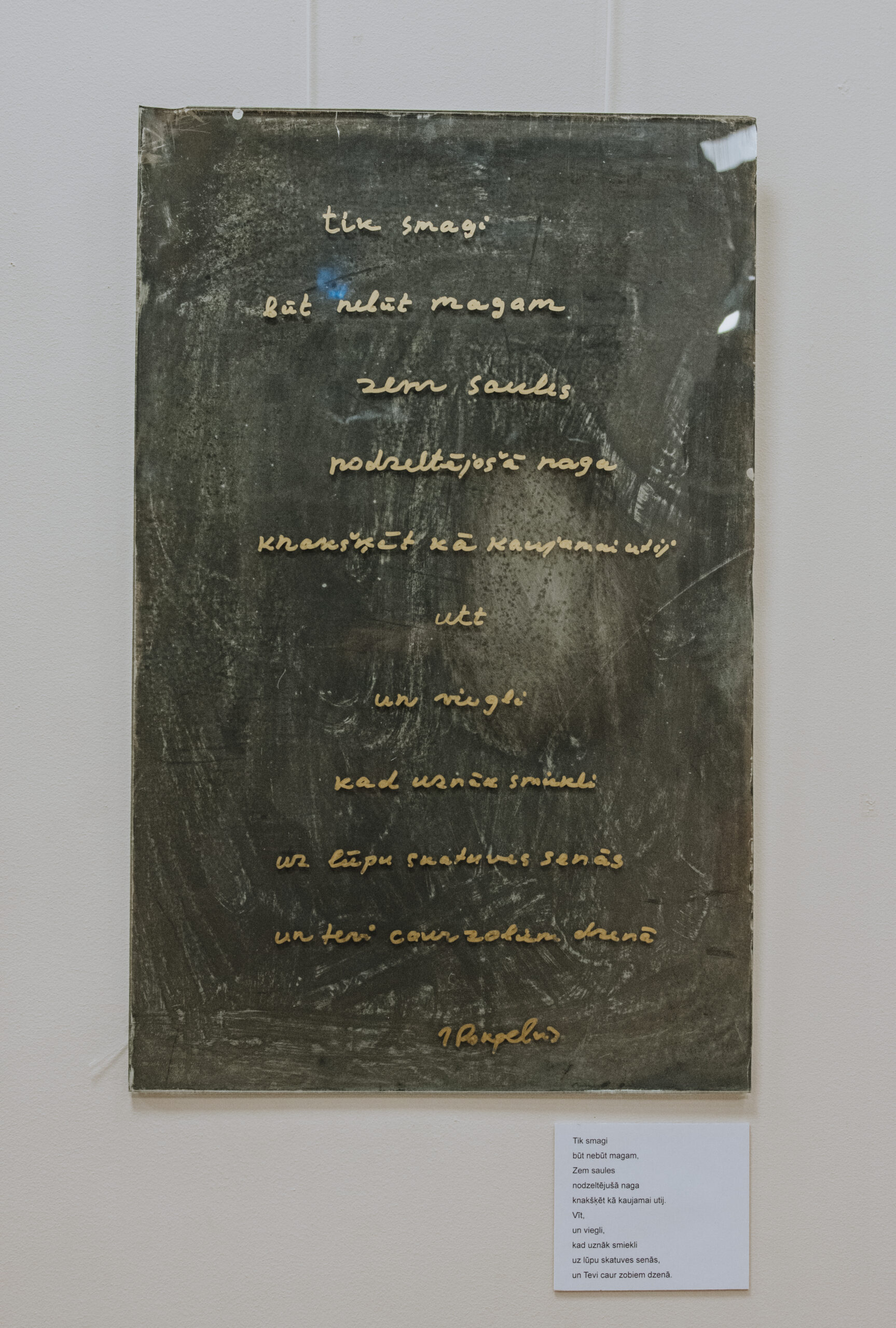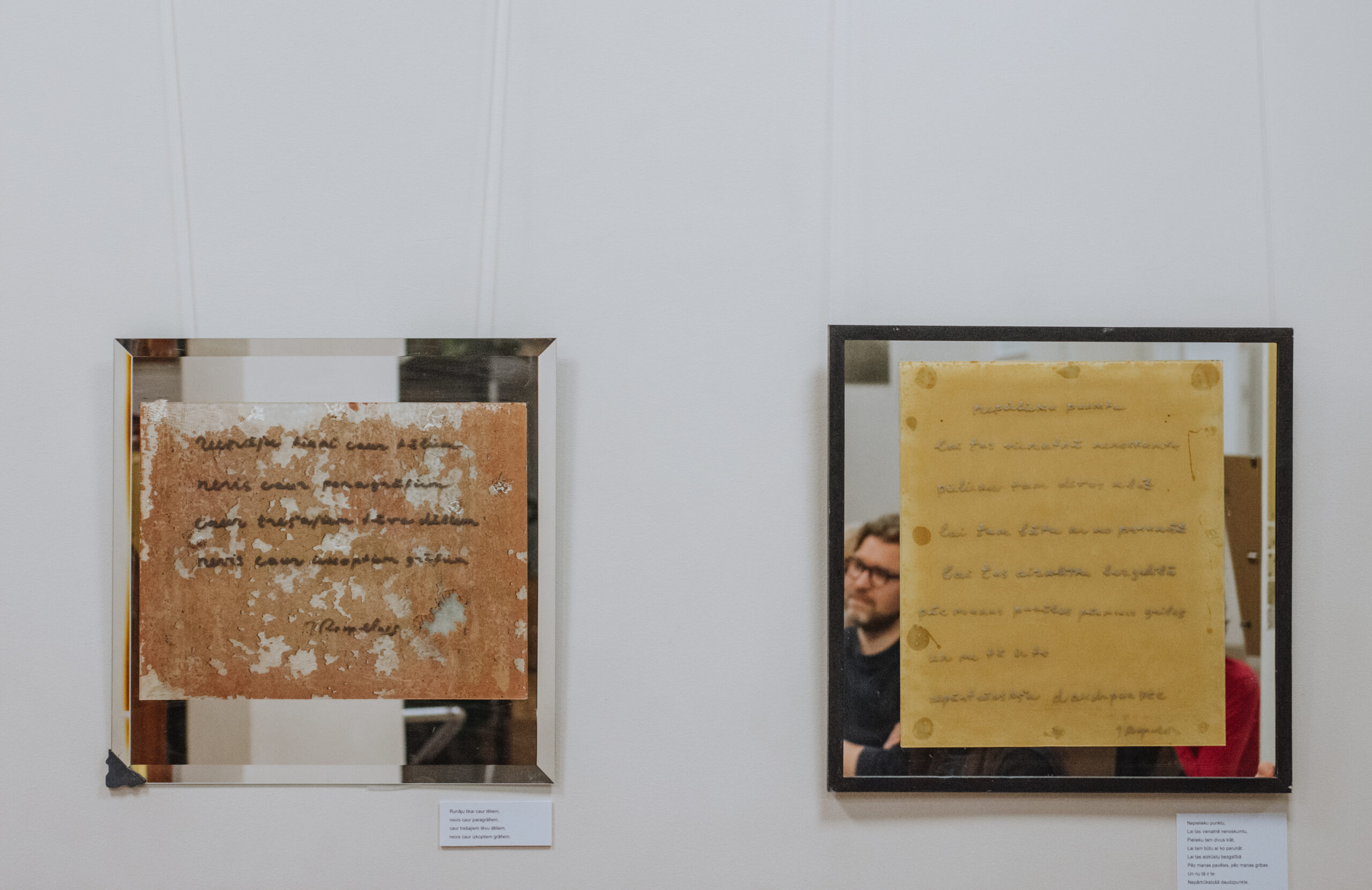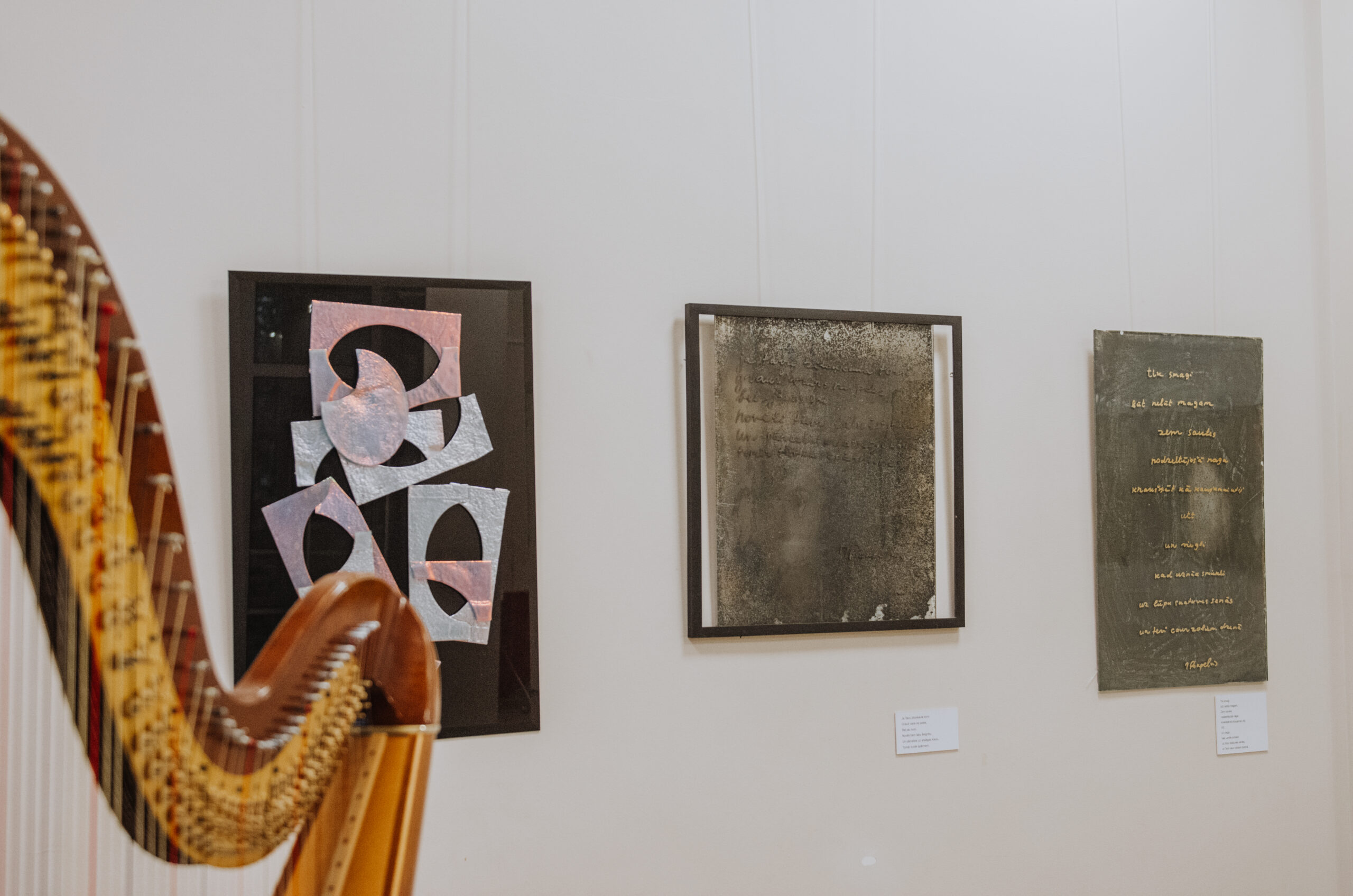 Mākslinieka Daiņa Gudovska un dzejnieka Jāņa Rokpeļņa izstādes “Teksti stiklā” atklāšana koncertzālē “Baltais flīģelis”