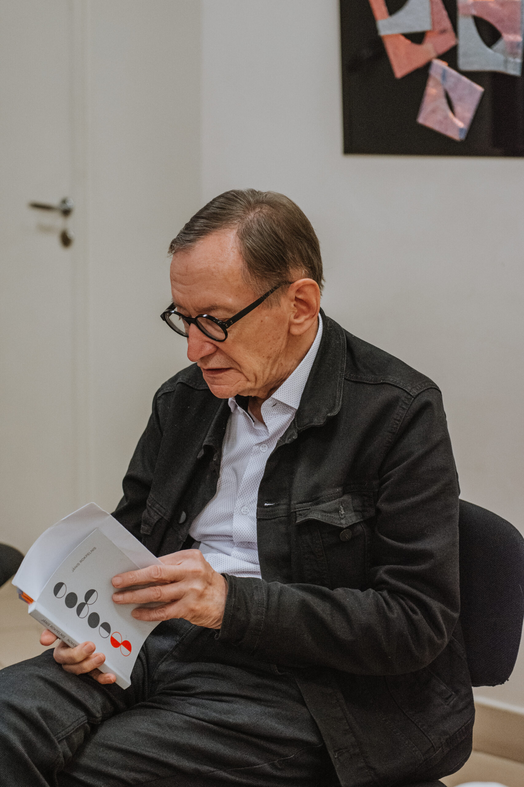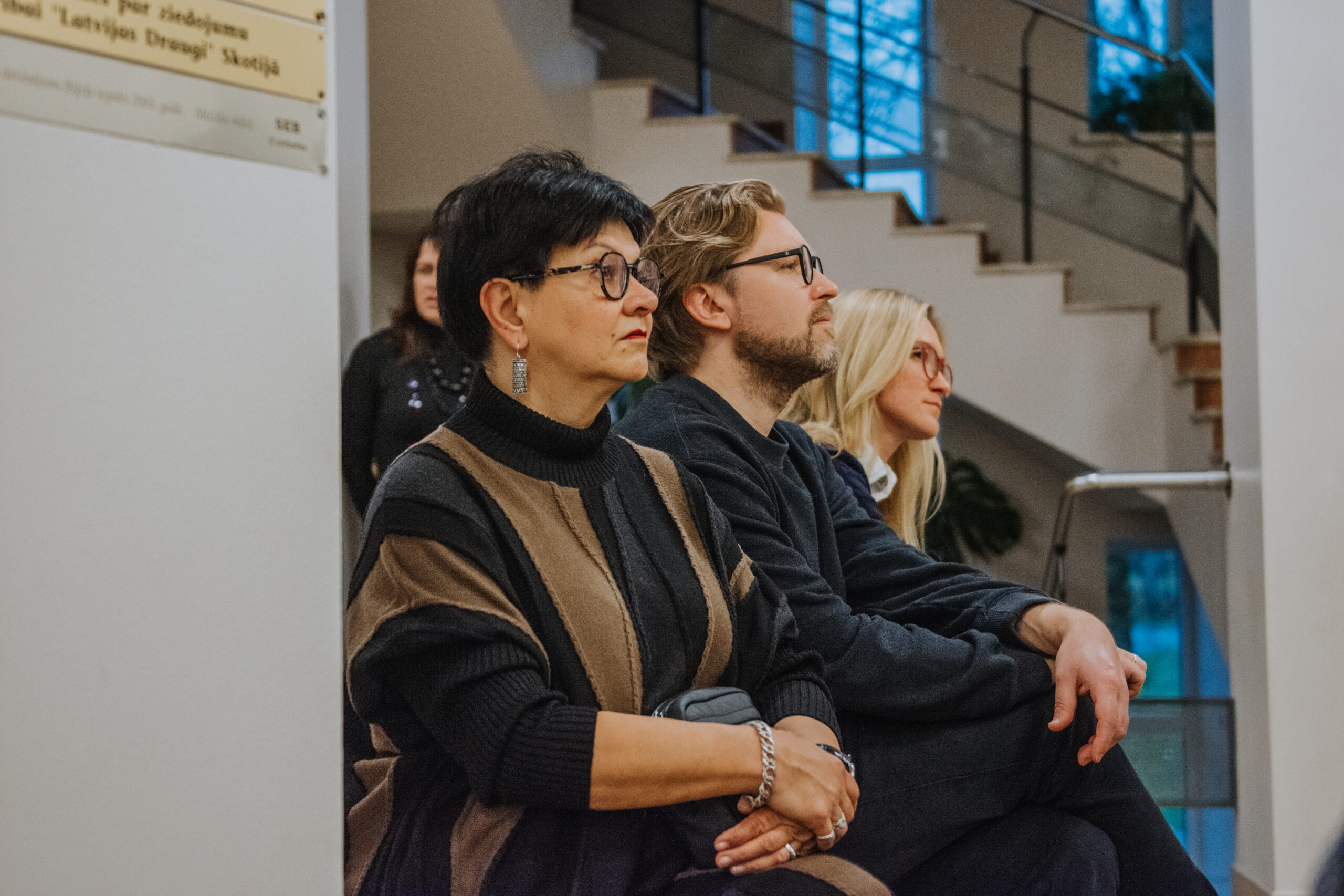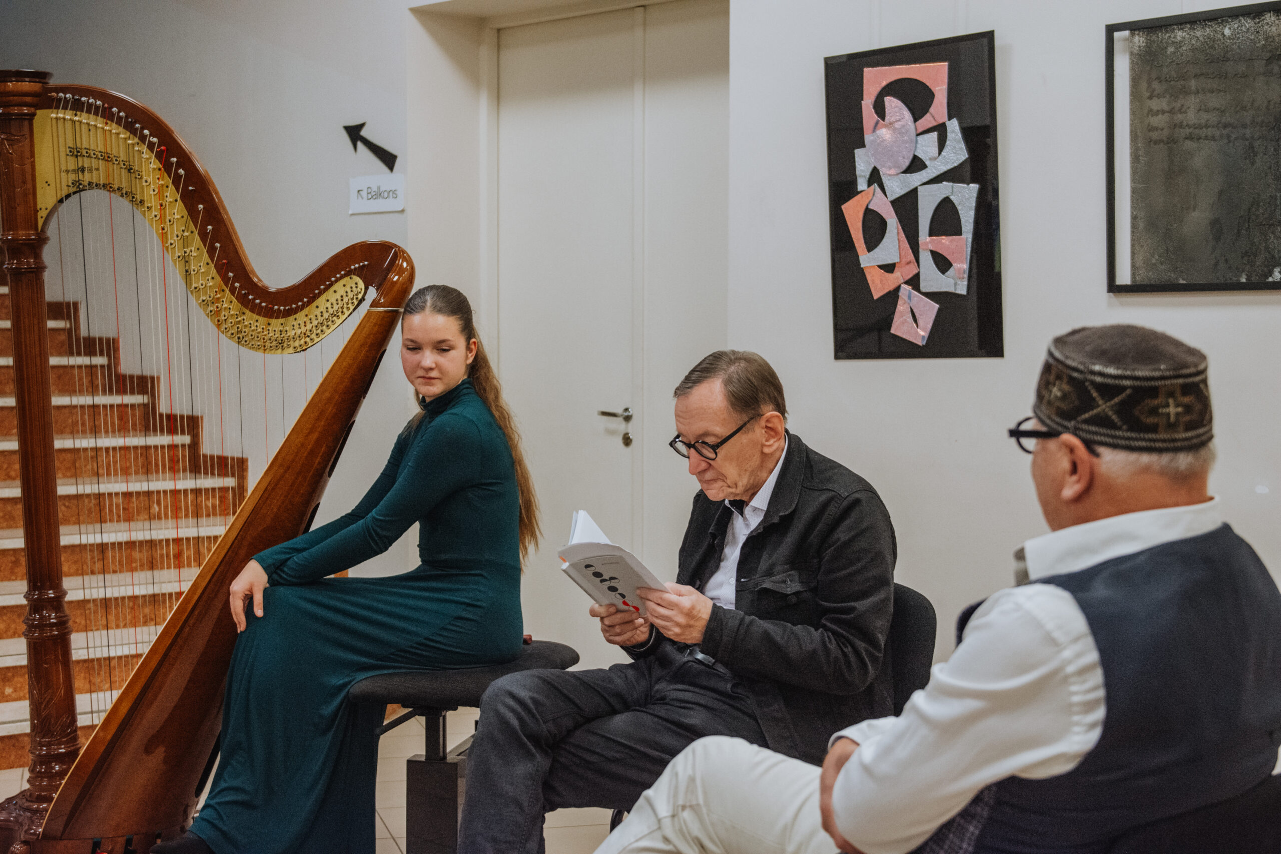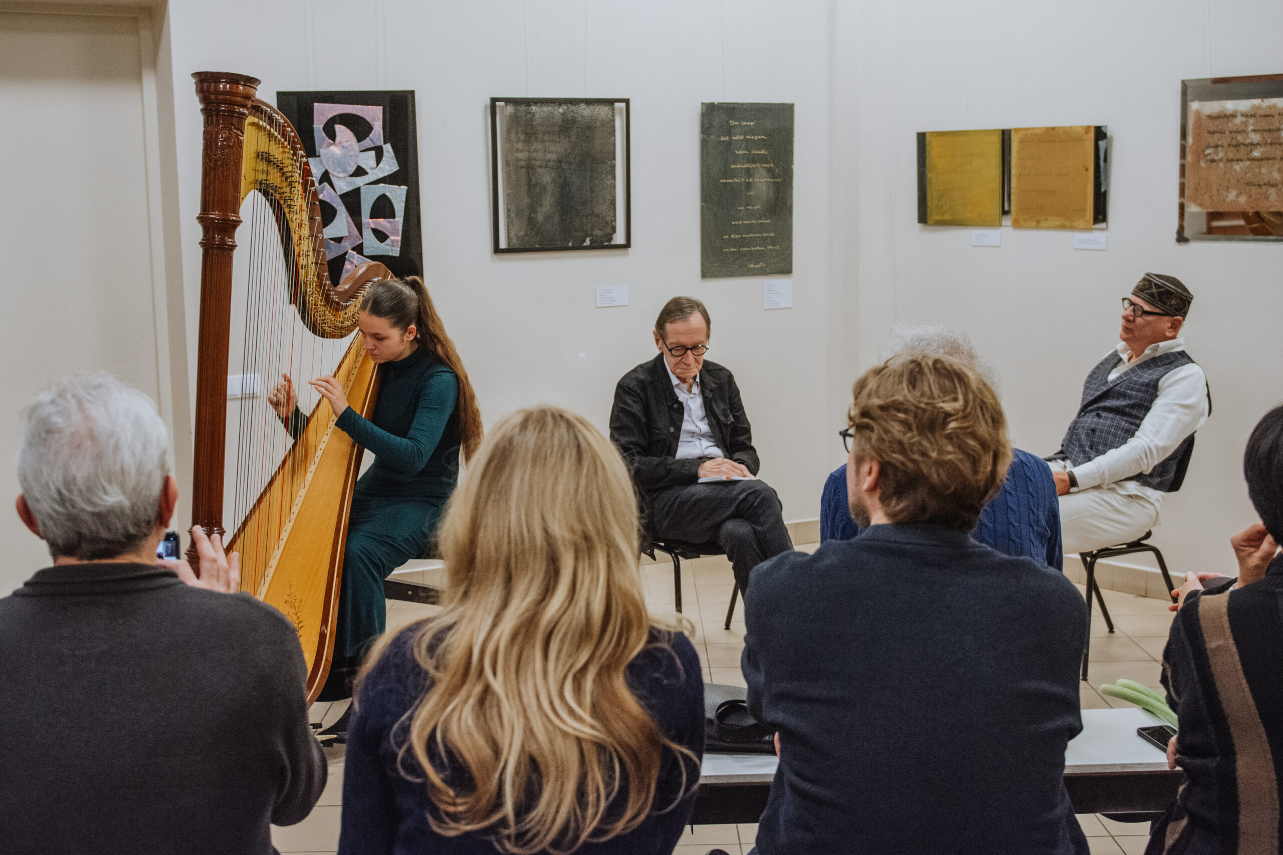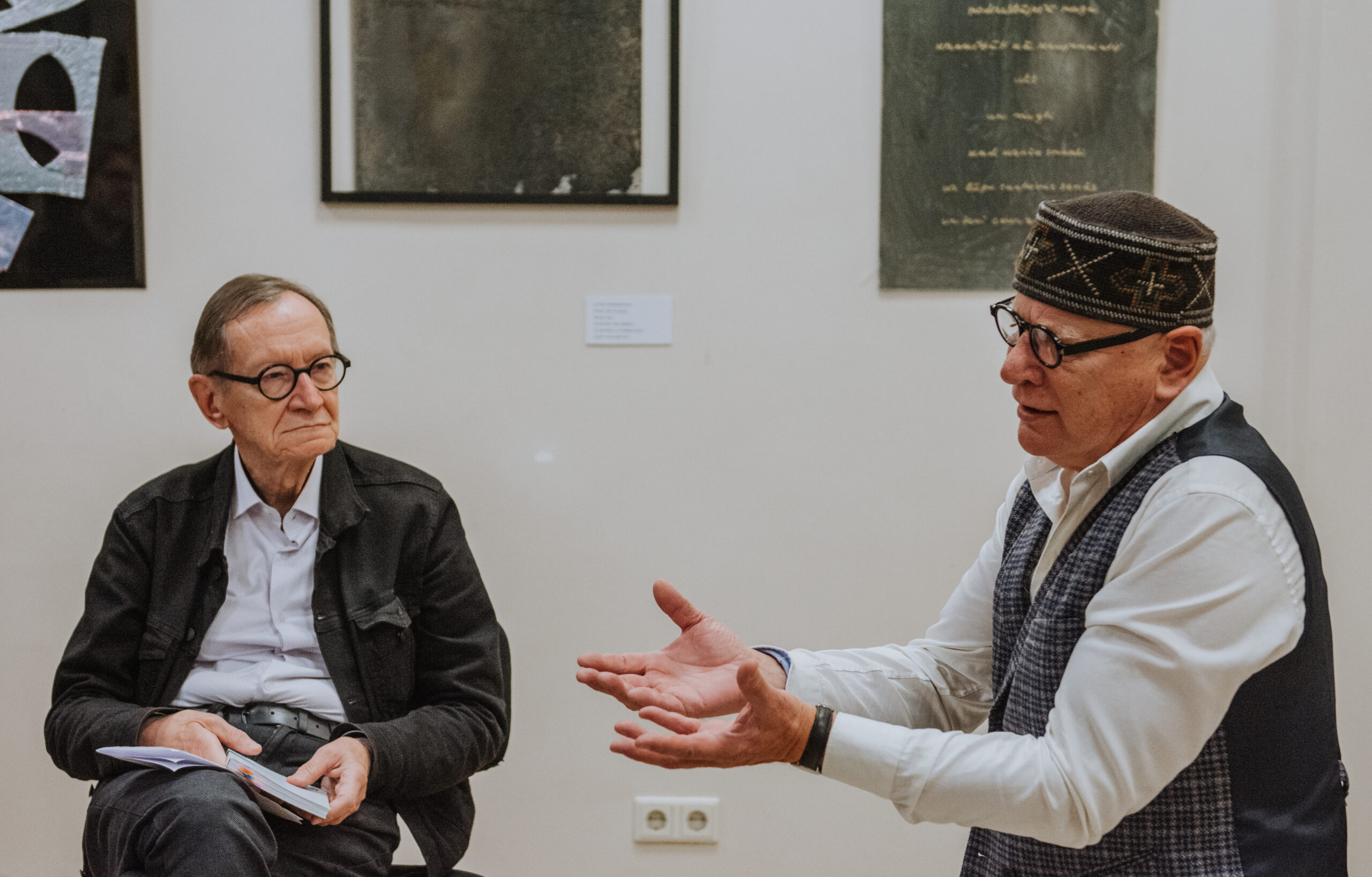 Mākslinieka Daiņa Gudovska un dzejnieka Jāņa Rokpeļņa izstādes “Teksti stiklā” atklāšana koncertzālē “Baltais flīģelis”