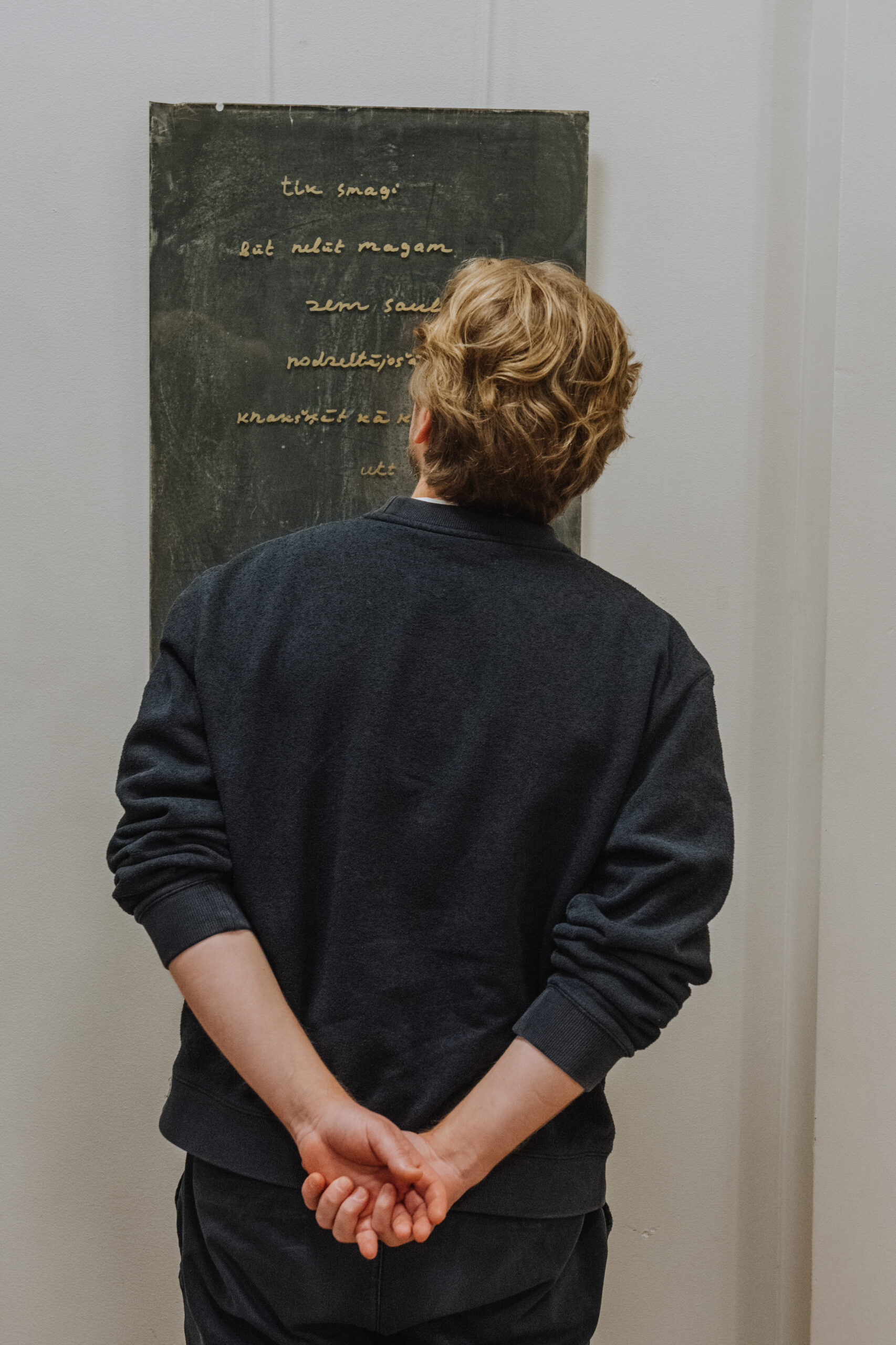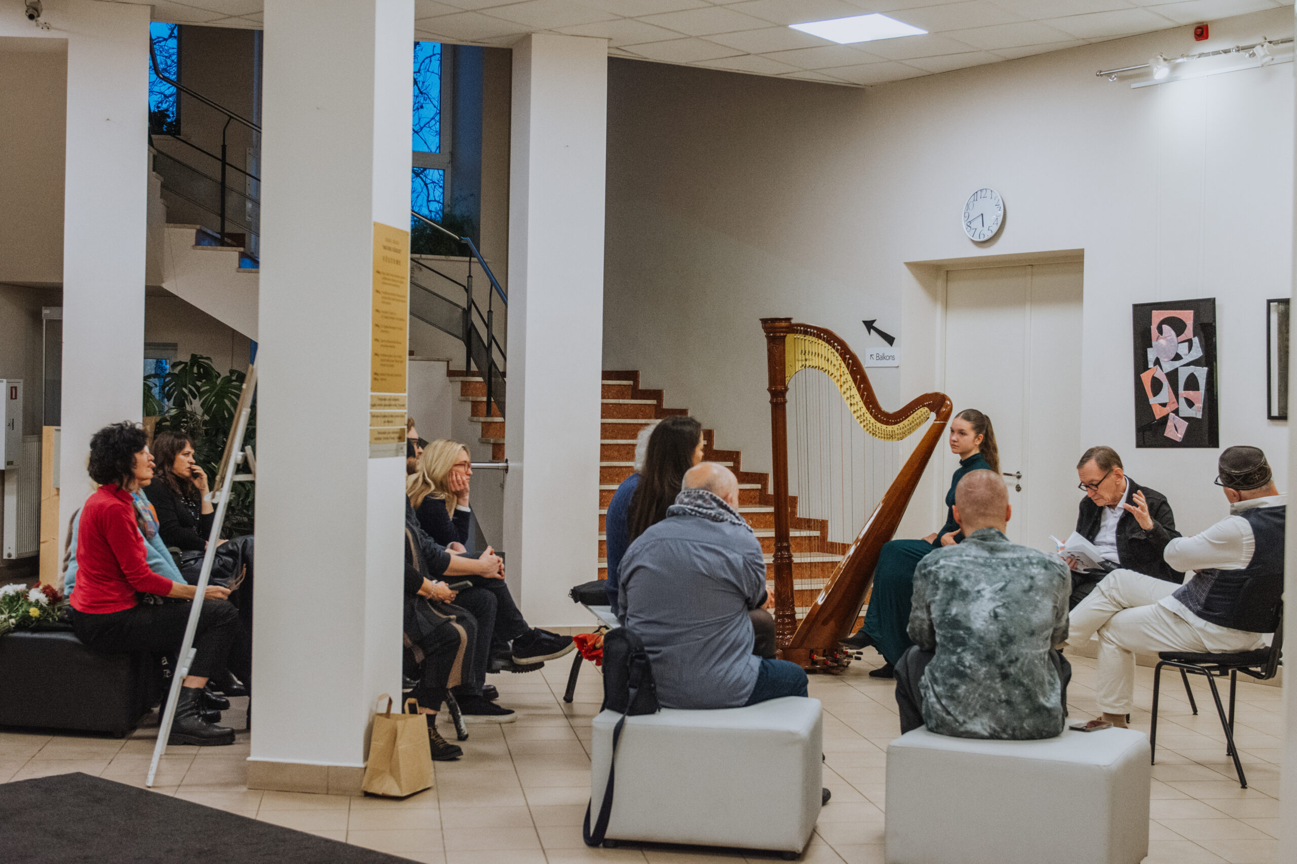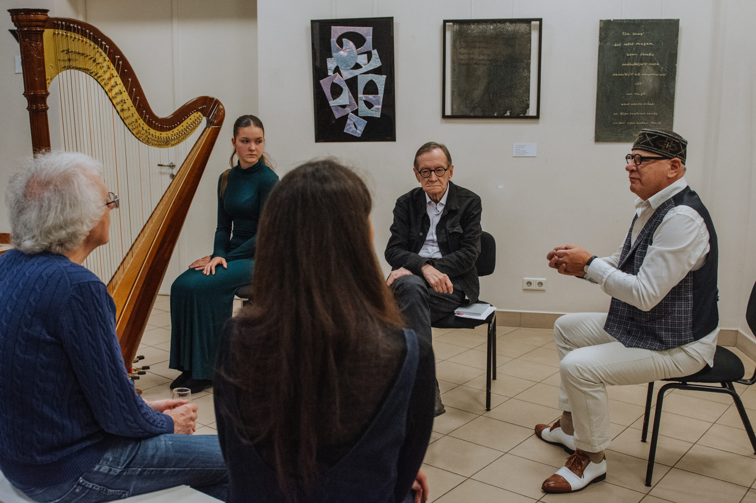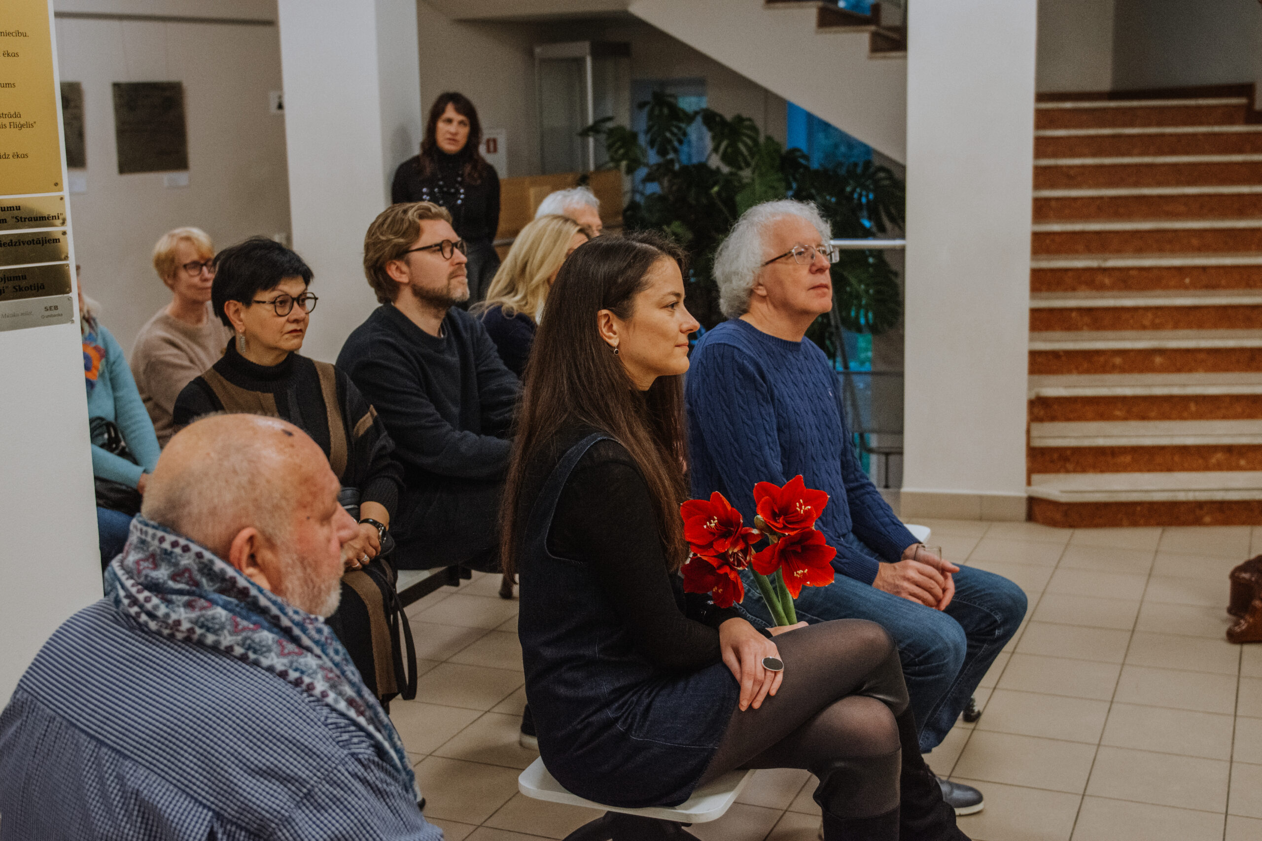 Mākslinieka Daiņa Gudovska un dzejnieka Jāņa Rokpeļņa izstādes “Teksti stiklā” atklāšana koncertzālē “Baltais flīģelis”