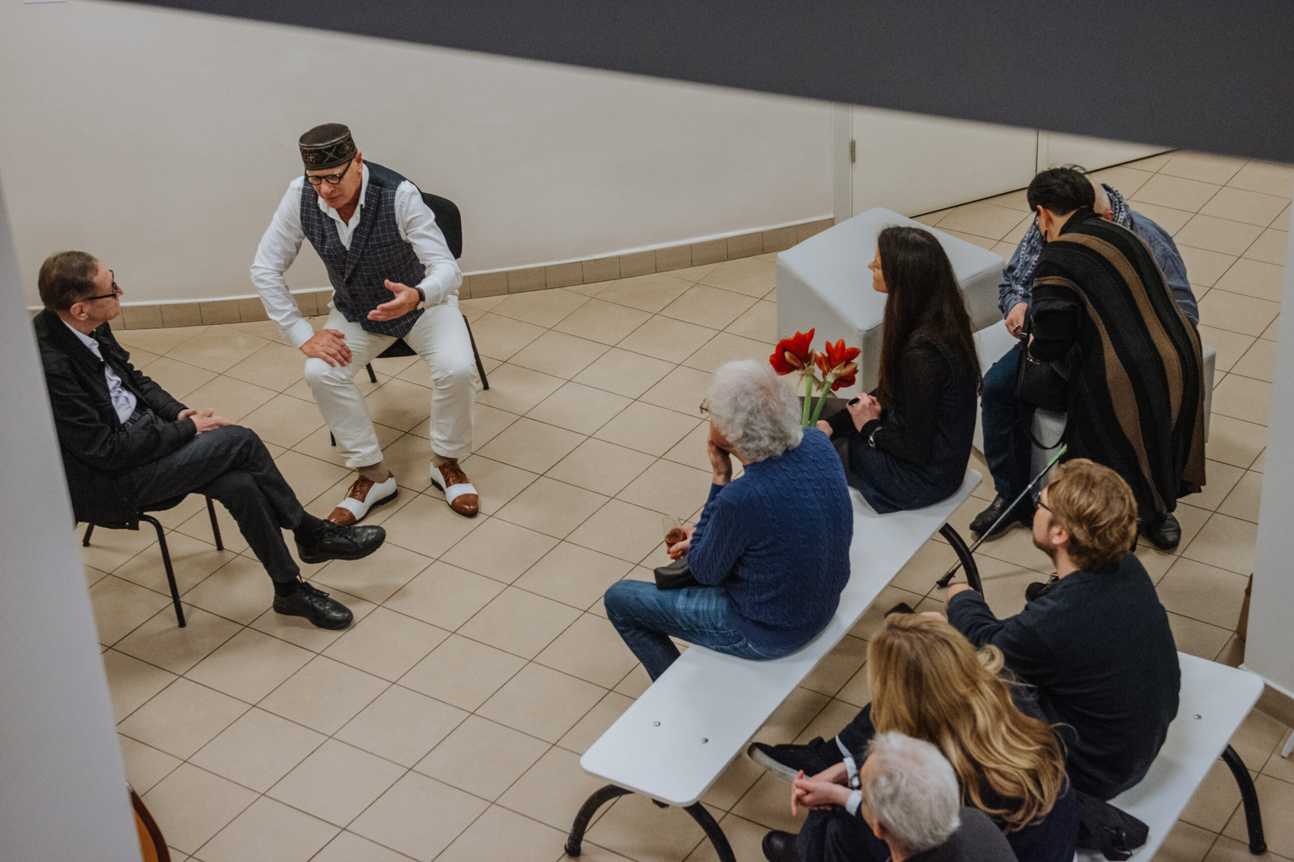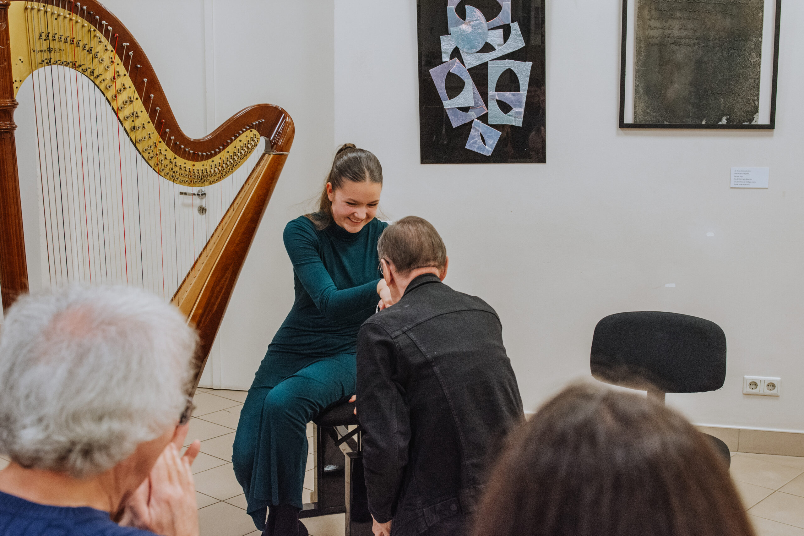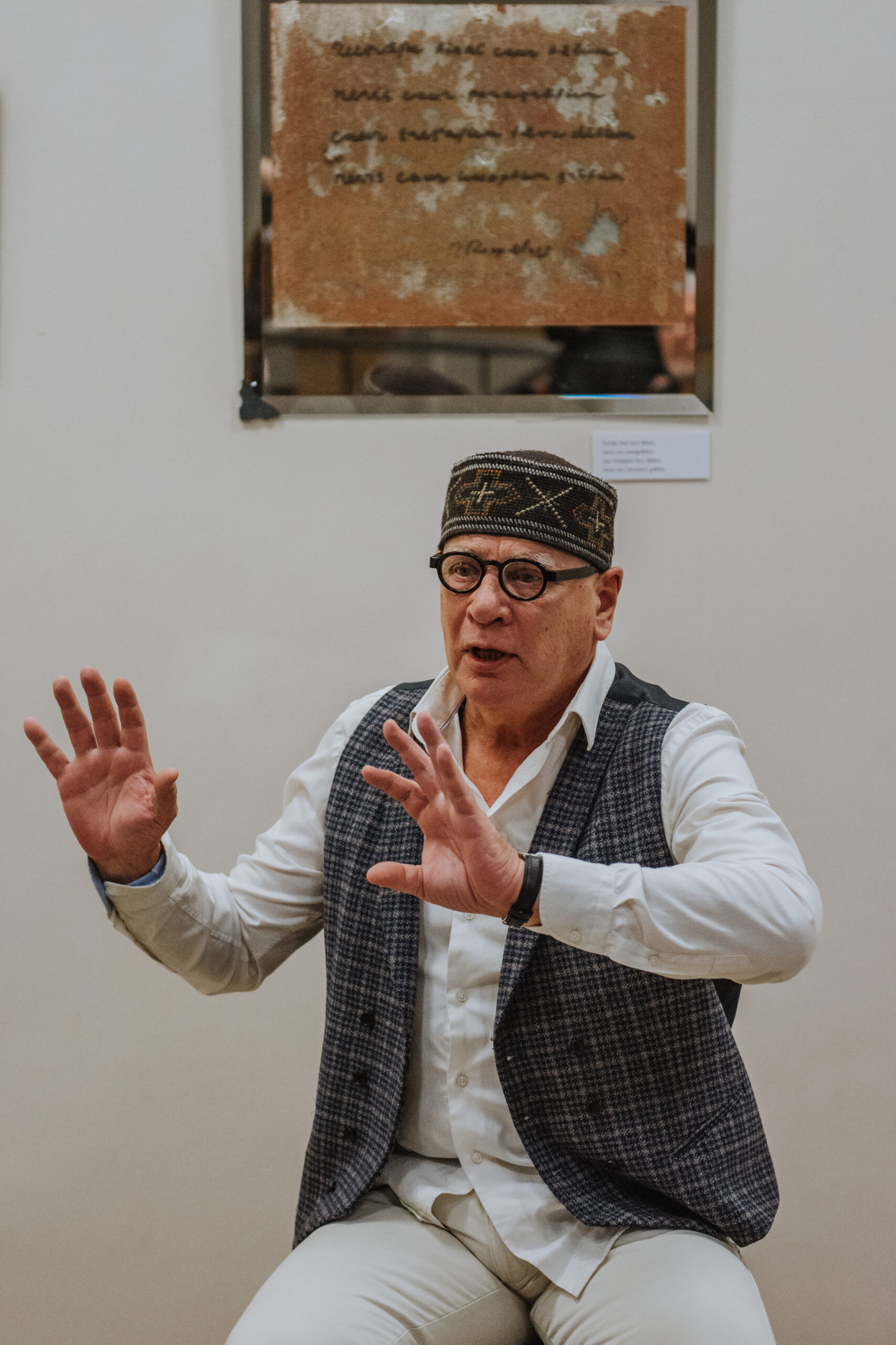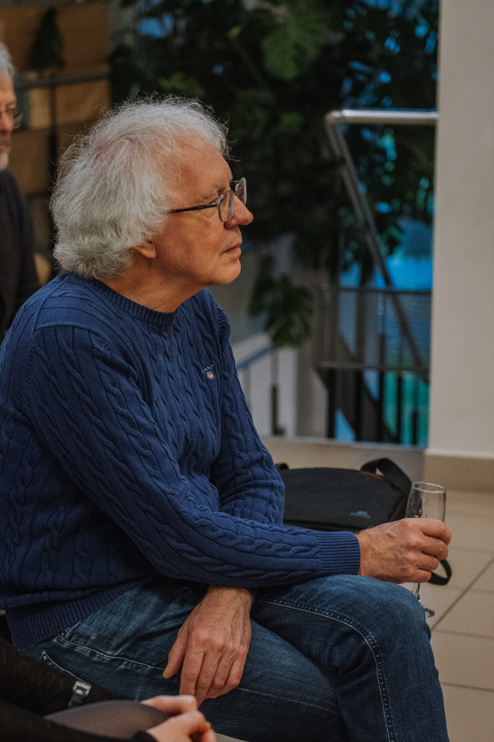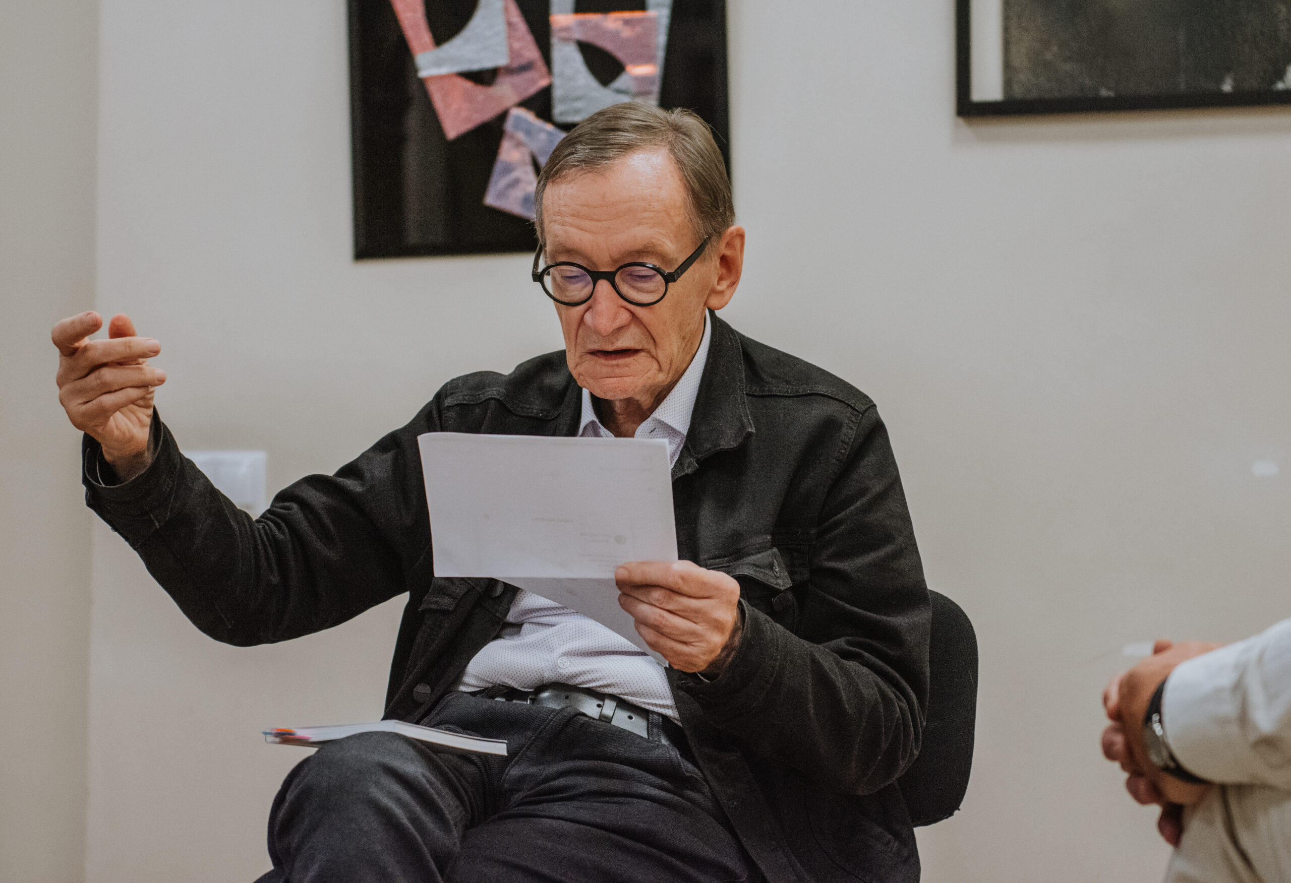 Mākslinieka Daiņa Gudovska un dzejnieka Jāņa Rokpeļņa izstādes “Teksti stiklā” atklāšana koncertzālē “Baltais flīģelis”