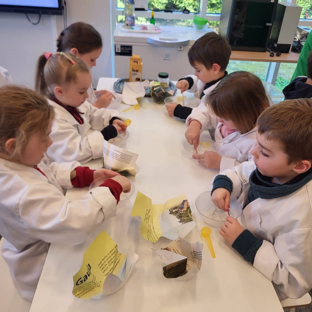 Laboratorijā notika grupu darbs – ķīmisko drošības apzīmējumu atpazīšana uz iepakojuma, plastmasas iepakojumu salīdzināšana un dažādu materiālu noteikšana ar skeneri. Uzsvars tika likts uz plastmasas iepakojumu un tā pareizu apsaimniekošanu. Praktiskajā darbā bērni gatavoja vannas bumbas un iepakojumu no dabai draudzīgiem materiāliem. Mācību klasē bērniem bija iespēja darboties ar robotbitēm un ar to palīdzību izzināt atkritumu šķirošanu, vadoties pēc precīzām instrukcijām.