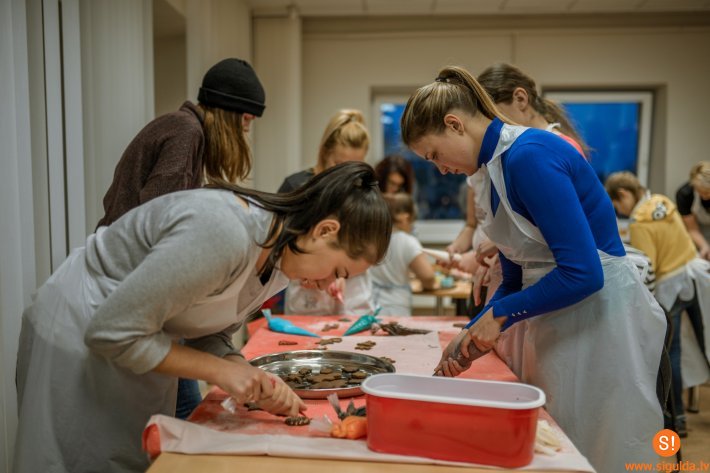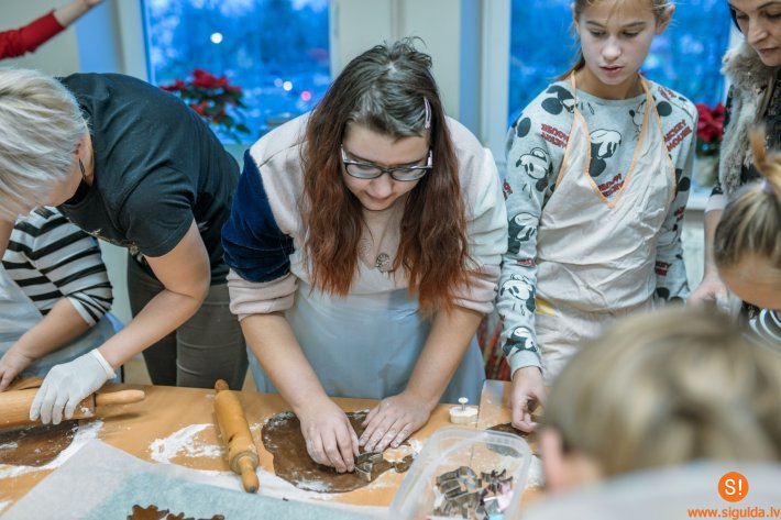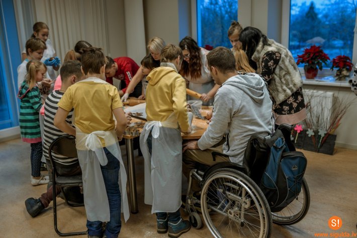 Lai gardā piparkūku veidošanas darbnīca noritētu ražīgi, Siguldas novada uzņēmēji dāvināja piparkūku mīklu, savukārt apsveikuma kartītēm nepieciešamos izejmateriālus bija sarūpējusi biedrība „Cerību spārni” un jauniešu iniciatīvu centrs „Mērķis”. Ikviens jaunietis spēja radoši izpausties, dekorēt pašu ceptās piparkūkas, kā arī rakstīt siltus sveicienus novada senioriem.