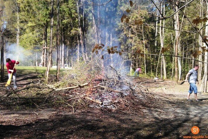 Atnākušie bija sadalīti piecās grupās, kur katrai bija savi uzdevumi: čaklie grābēji kopa visu skolas teritoriju līdz pat gravai, ugunskuru meistari tika galā ar zaru un lapu kaudzēm, zāģētāju brigāde cīnījās ar sīkajiem krūmiņiem un atvasēm, „Tarzāna” parkā uzbērēju komanda līdzināja šķeldu, savukārt dārzkopji iekārtoja puķu dobes pie Laurenču sākumskolas ieejas.
