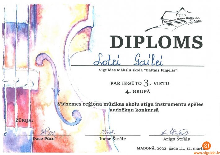 11. un 12. martā norisinājās 1. Vidzemes reģiona mūzikas skolu stīgu instrumentu spēles audzēkņu konkurss, kurā kopumā piedalījās 51 dalībnieks no 27 skolām. Konkursā piedalījās arī Mākslu skolas “Baltais flīģelis” čella spēles audzēkne Lote Gaile, kura konkursā izcīnīja augsto 3. vietu.
