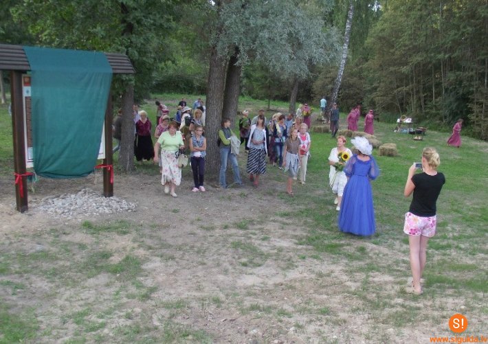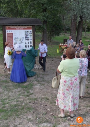 Uz svinīgo vides stenda atklāšanu pulcējās vairāk nekā piecdesmit pagasta iedzīvotāji un viesi. Stendu atklāja Siguldas novada Domes priekšsēdētāja vietniece Līga Sausiņa un projekta vadītāja Marika Celma. Pasākumā piedalījās arī Mores pagasta pašdarbības kolektīvi, notika radošās darbnīcas  –  salmu leļļu darināšana un grūdeņa gatavošana uz ugunskura. Katrs, kas vēlējās uzzināt vairāk par mūsu senču sadzīvi un Akenstakas muižas vēsturi, varēja piedalīties konkursā. Pirms tumsas iestāšanās pasākuma dalībnieki Sudas upē palaida degošas sveces ar labām domām un vēlējumiem  nākotnei, kas noteikti piepildīsies, jo kopā mēs varam!