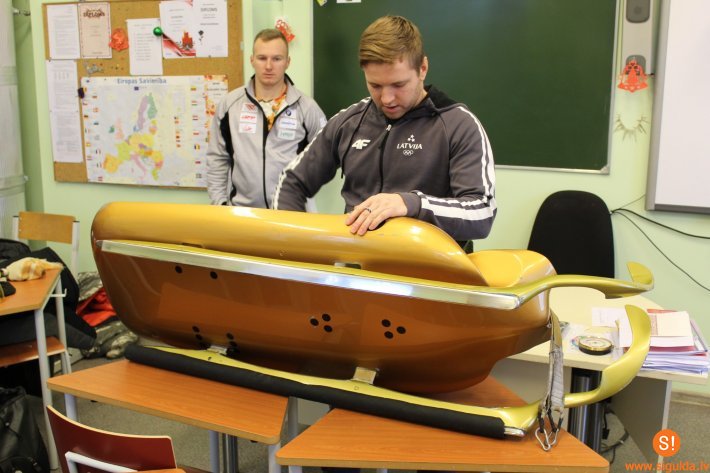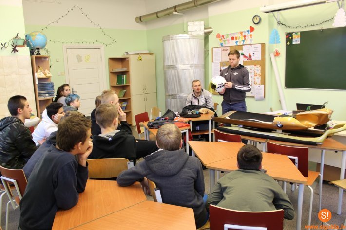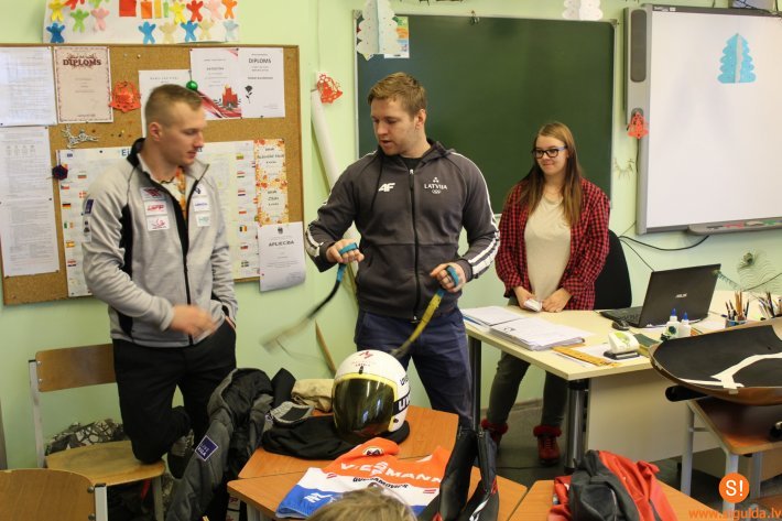 Skolēniem bija iespēja apskatīt un pat pielaikot sportistu inventāru. Sportisti demonstrēja kā pareizi iesēsties kamaniņās. Pēc tam arī skolēniem bija iespēja iejusties sportistu ādā un iegulties kamaniņās. Skolēniem tikšanās sagādāja pozitīvas emocijas un bērni novēlēja kamaniņu braucējiem veiksmi turpmākajos sacensību posmos.