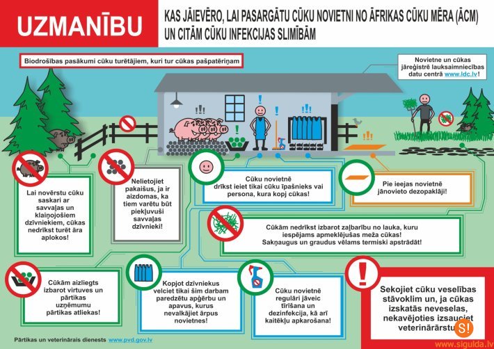 Papildu informācija par Āfrikas cūku mēri un drošības pasākumiem pieejama dienesta tīmekļa vietnē.