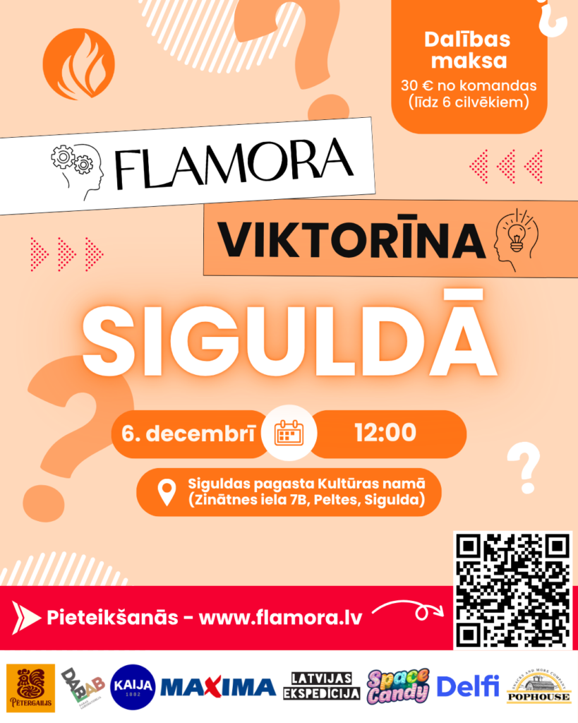 6. decembrī plkst. 12.00 Siguldas pagasta Kultūras namā notiks izzinošs un aizraujošs pasākums – Flamora viktorīna, kurā aicinātas piedalīties komandas līdz sešiem cilvēkiem.