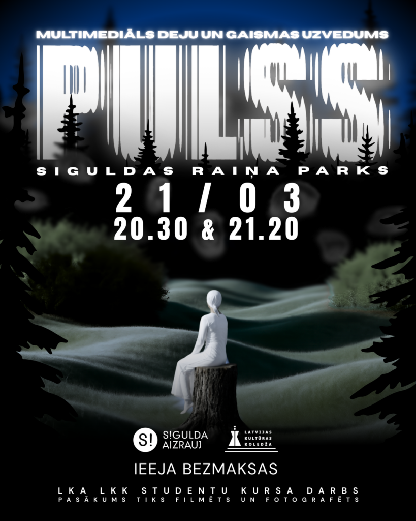 21. martā plkst. 20.30 Raiņa parkā, Siguldā, skatītājiem būs iespēja piedzīvot īpašu kultūras notikumu – multimediālu dejas un gaismas uzvedumu “Pulss”, ko veidojuši Latvijas Kultūras akadēmijas Latvijas Kultūras koledžas studenti sadarbībā ar profesionāliem māksliniekiem un Siguldas novada deju kolektīviem.
