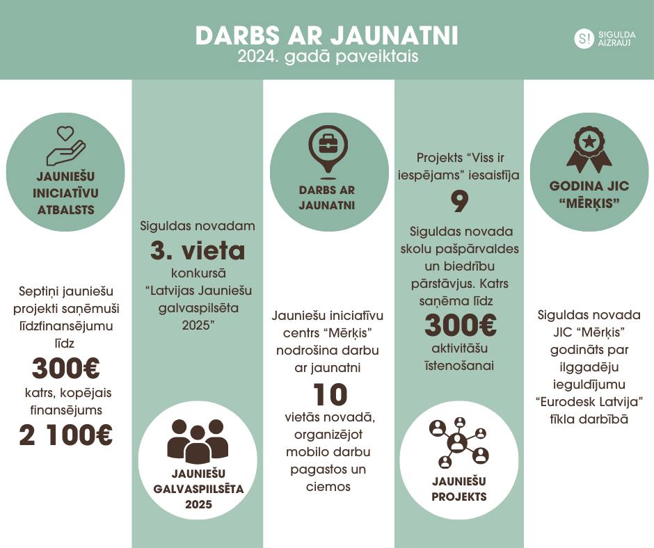 • Siguldas novada pašvaldība piedalījusies akcijā “Sezonas darbi”, kuras laikā darba meklētājiem bija iespēja satikties ar dažādiem darba devējiem, tostarp uzzināt par darba iespējām pašvaldībā.