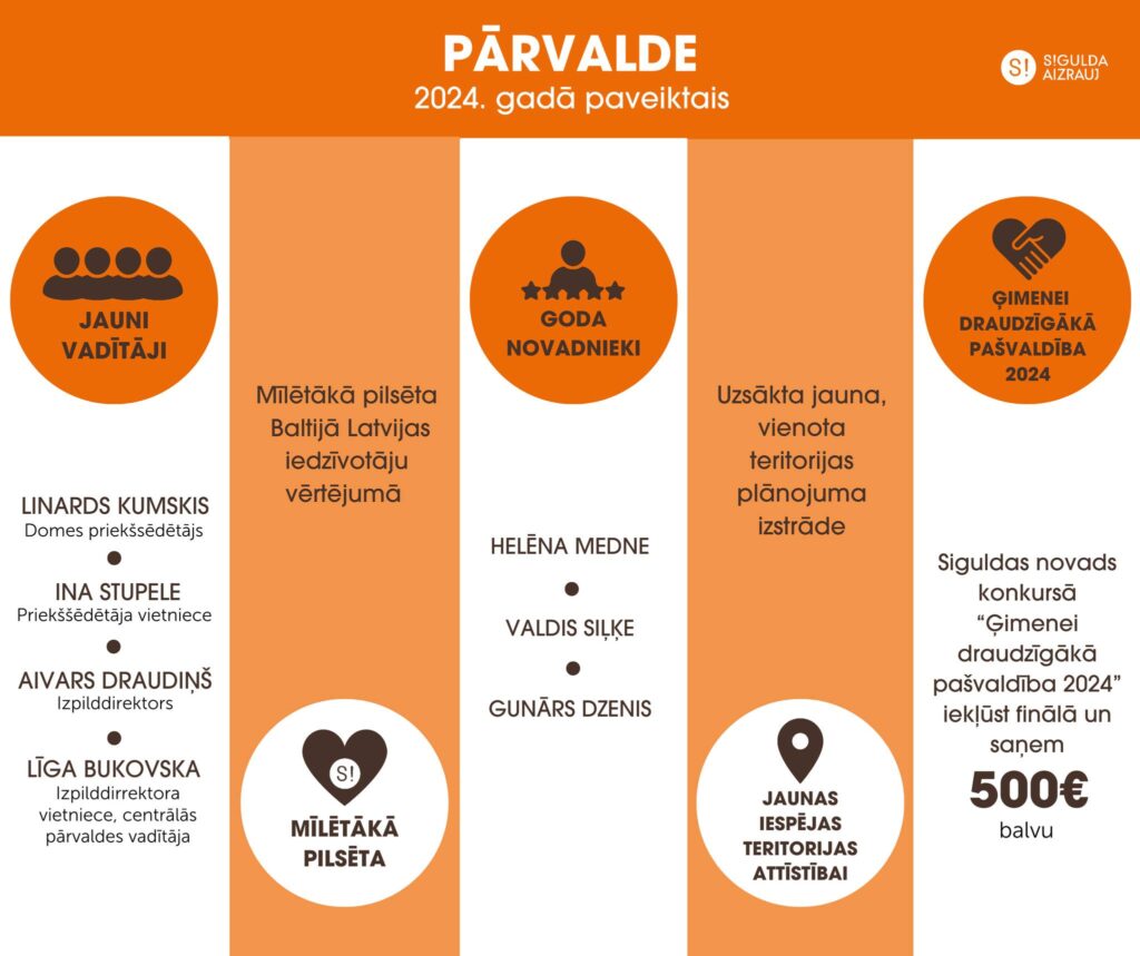 • Siguldas novada pašvaldība – viena no ģimenei draudzīgākajām pašvaldībām, konkursā “Ģimenei draudzīgākā pašvaldība Latvijā 2024” iekļūstot finālā.