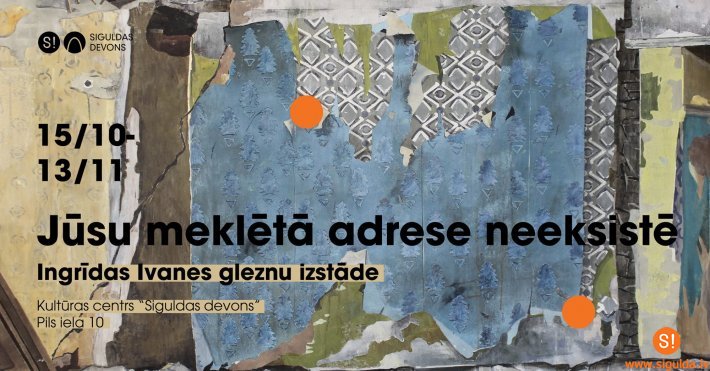 No piektdienas, 15. oktobra, kultūras un mākslas telpā “Siguldas devons” būs apskatāma mākslinieces Ingrīdas Ivanes gleznu izstāde “Jūsu meklētā adrese neeksistē”. Turpinot dažādu ēku sienām veltīto sēriju, autore savos jaunākajos darbos pievēršas telpas un atmiņu attiecībām – tās ir sienas, kuru vairs nav, pazudušas zem buldozera kausa kampiena, ieslodzītas zem renovācijas baltā apmetuma kārtām.