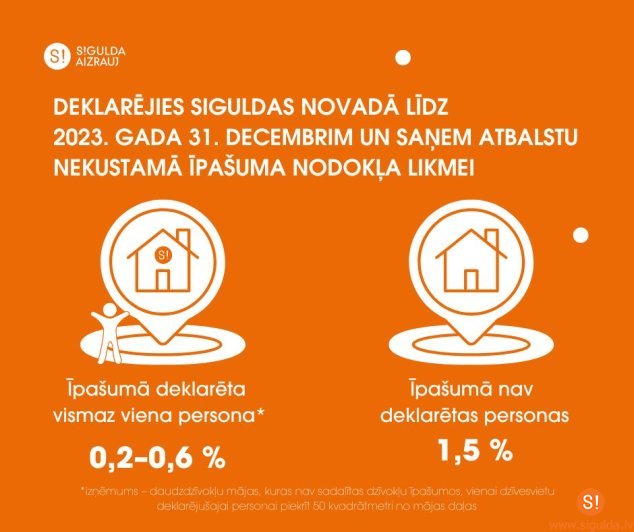 Vairāku gadu garumā pievēršot uzmanību novadā deklarēto novadnieku labbūtībai, Siguldas novada pašvaldība iedzīvotājiem, kuri ir deklarējušies novada teritorijā, sniedz virkni ar dažādām priekšrocībām, tostarp arī nekustamā īpašuma nodokļa atvieglojumus, kā arī samazinātu nekustamā īpašuma nodokļa likmi mājoklim. Lai saņemtu pilnu atbalsta programmu, iedzīvotāji, kuri vēl nav deklarējušies Siguldas novadā, to aicināti izdarīt līdz šā gada 31. decembra plkst. 23.59.