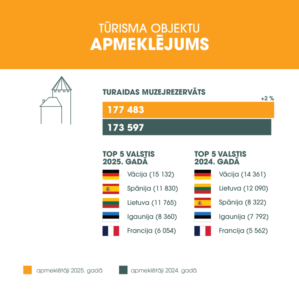 • Lietuva (4683 viesi, kas ir par 13,36 % vairāk nekā 2024. gadā);