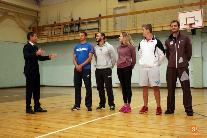 Topošie olimpieši pirmo sporta stundu aizvadīja kopā ar profesionālajiem sportistiem — skeletonistu Tomasu Dukuru, kā arī kamaniņu braucējiem Ullu Zirni, Ināru Kivlenieku, Kristapu Mauriņu un Riku Kristenu Rozīti.