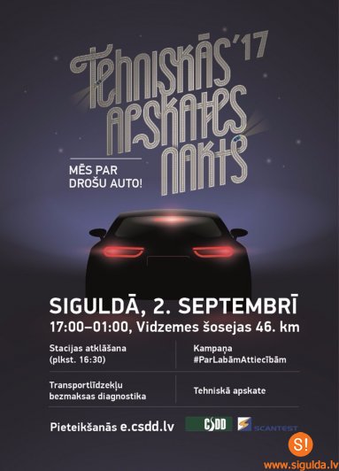 Pēc stacijas atklāšanas līdz plkst.1.00 notiks pasākums „Tehniskās apskates nakts 2017”, kura laikā autovadītāji bez maksas varēs veikt auto diagnostiku. Ja diagnostikā transportlīdzeklim netiks atklāti būtiski bojājumi, būs iespēja veikt arī auto tehnisko apskati, pirms tam veicot nepieciešamos maksājumus.