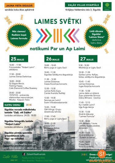 Laimes svētkos darbosies Siguldas pirmās speciālās grauzdētavas kafejnīca, kā arī pop–up veikaliņš. Visi pasākumi labu laikapstākļu gadījumā plānoti ārtelpās, lietus gadījumā – iekštelpās. Pasākumu organizē biedrība „Radītava Zaļā Villa”.